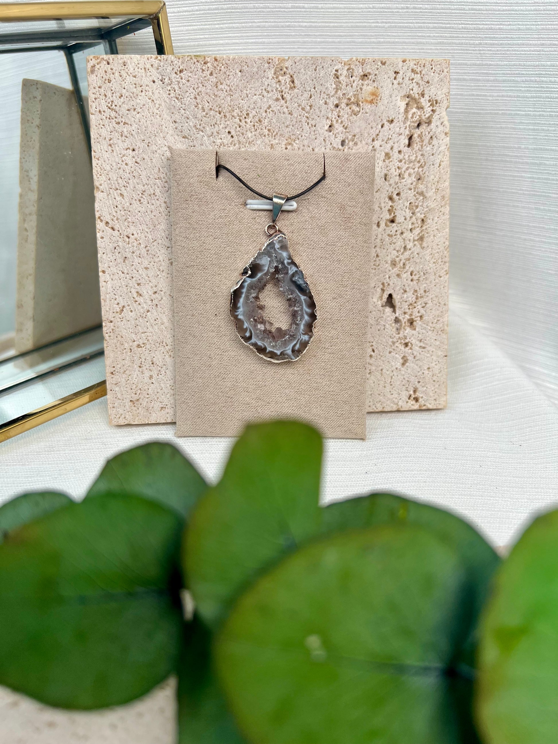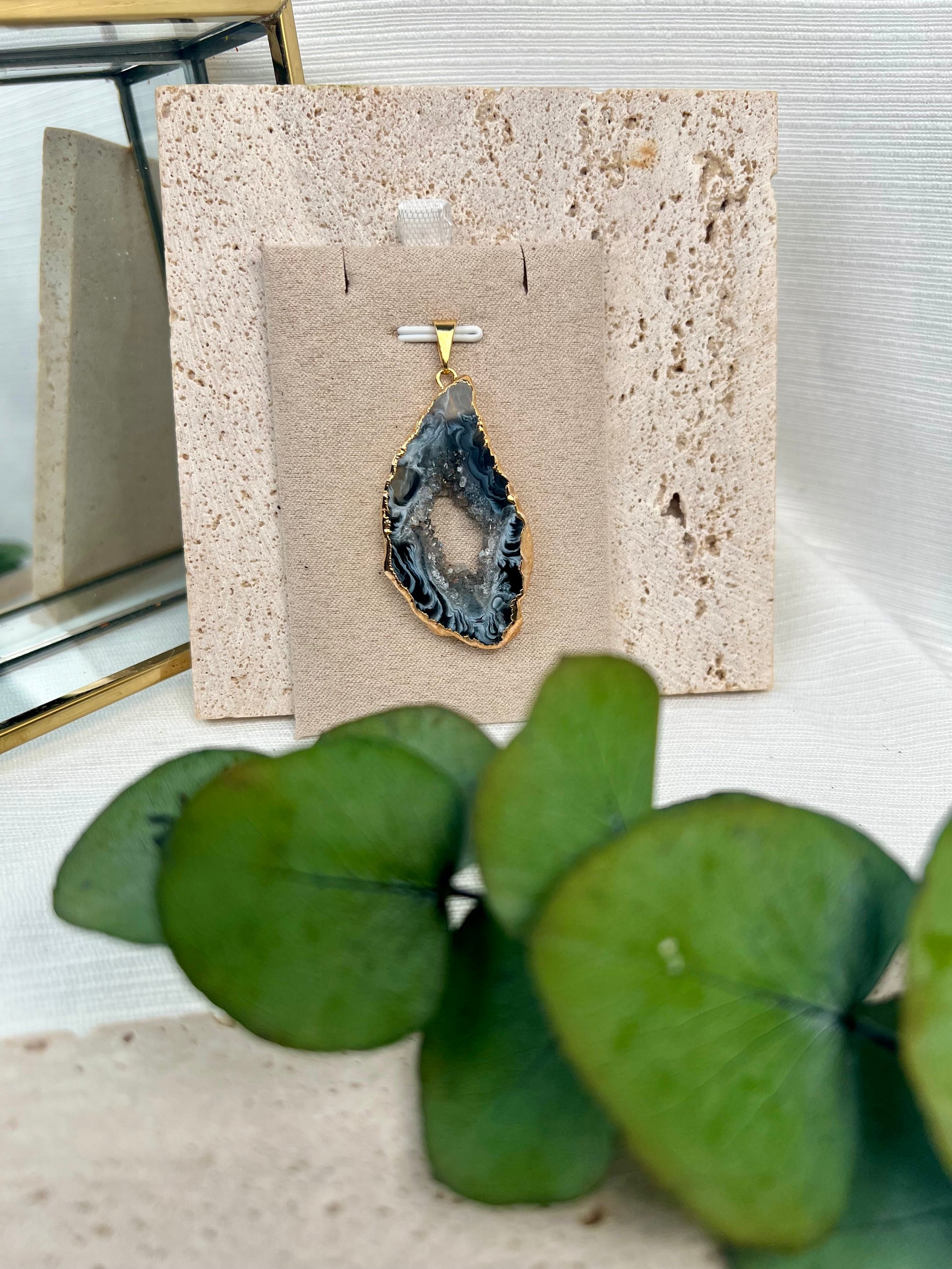 Galvanisierter Achat Anhänger – edel schimmernd in Gold oder Silber, ein besonderer Blickfang.