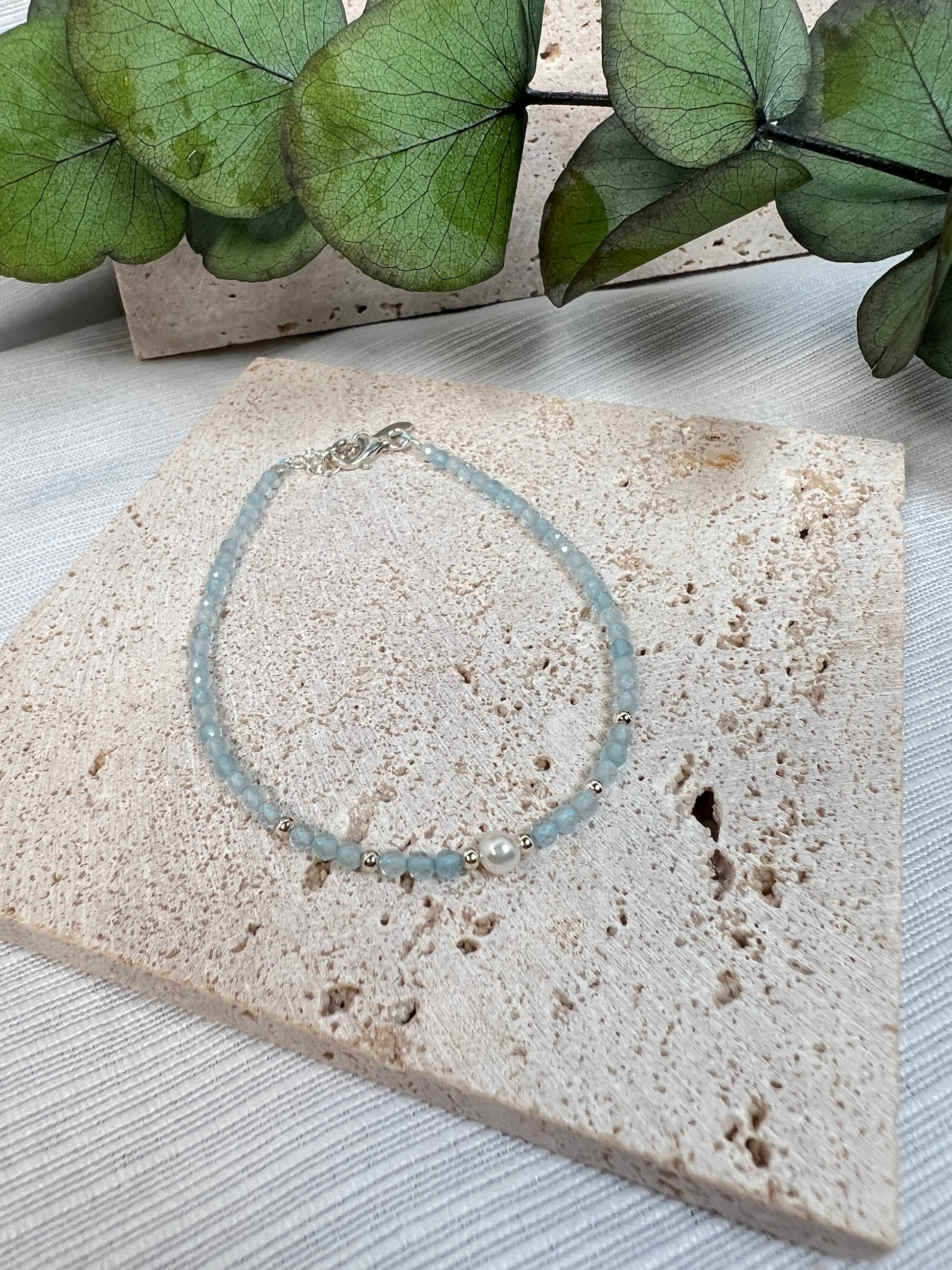 Facettiertes Aquamarin Armband mit einer Süßwasserperle