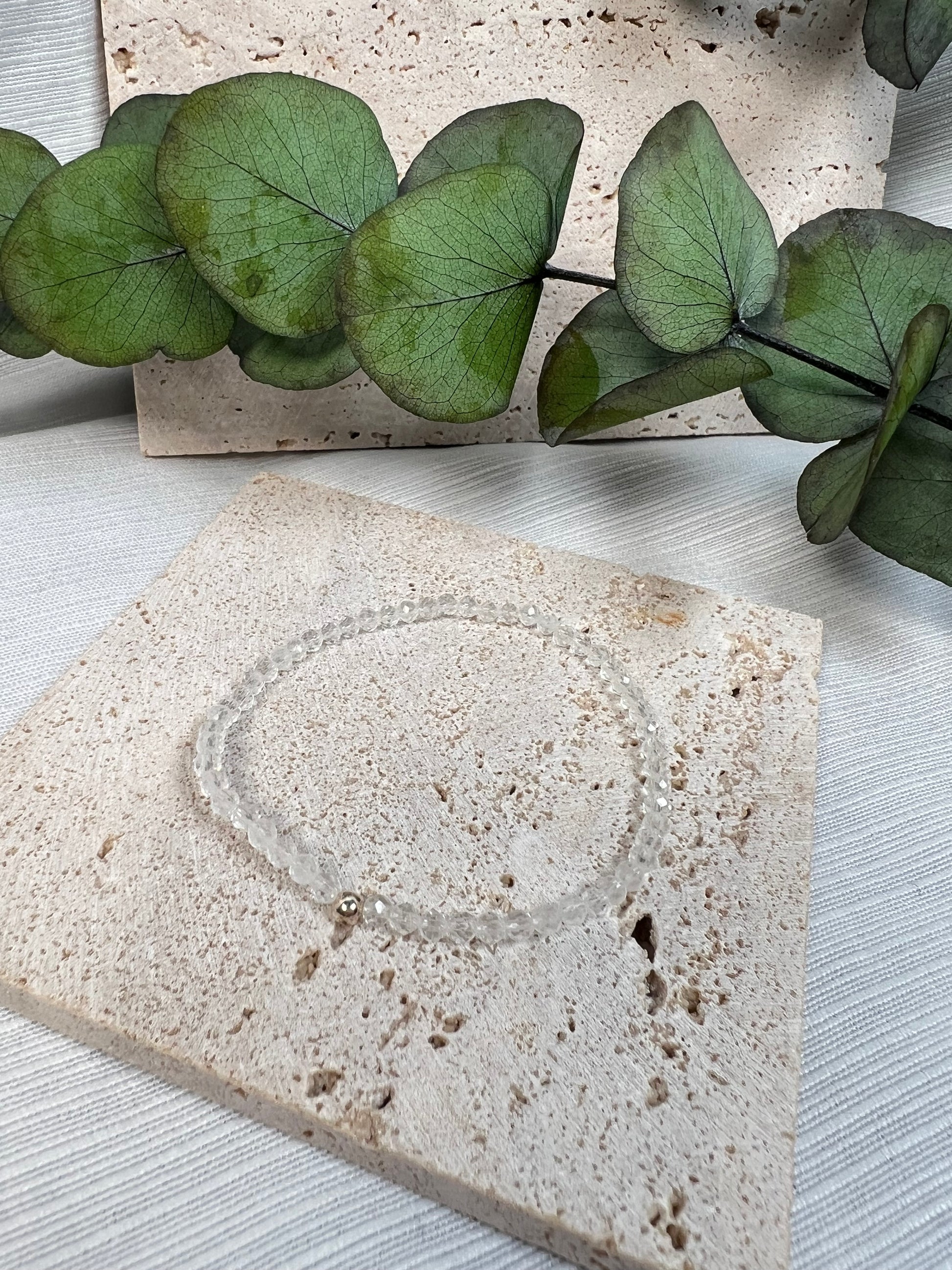 Facettiertes Bergkristall Armband mit einer feinen 925 Silberperle