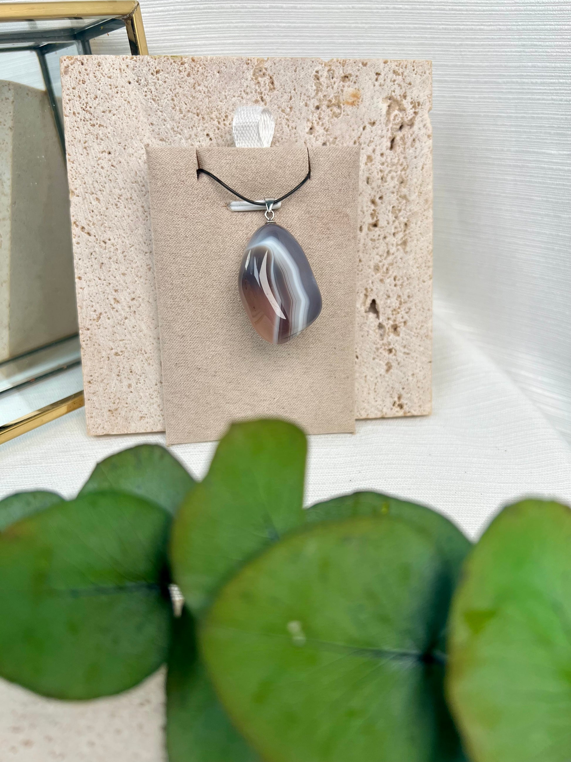 Botswana-Achat Anhänger mit Silberöse – schützender Begleiter mit sanften Bändern in warmen Naturtönen.