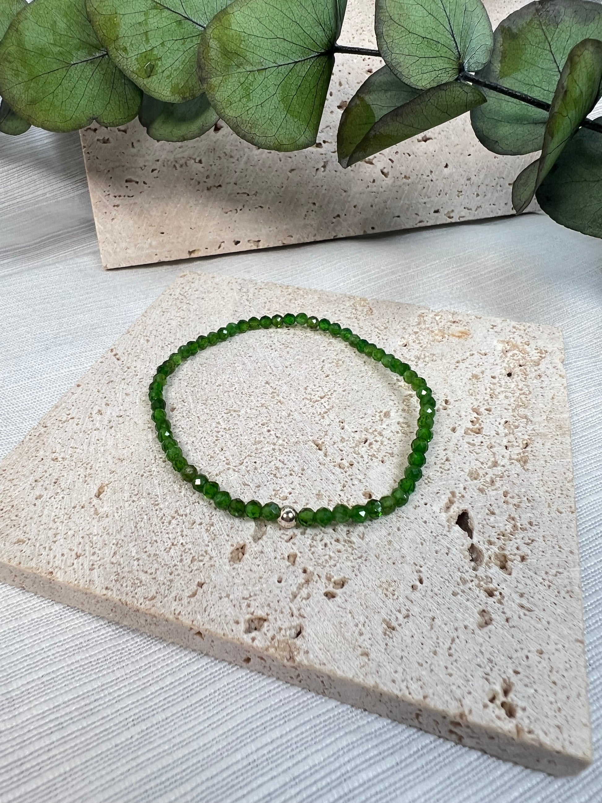 Facettiertes Chromdiopsid Armband mit einer feinen 925 Silber Perle