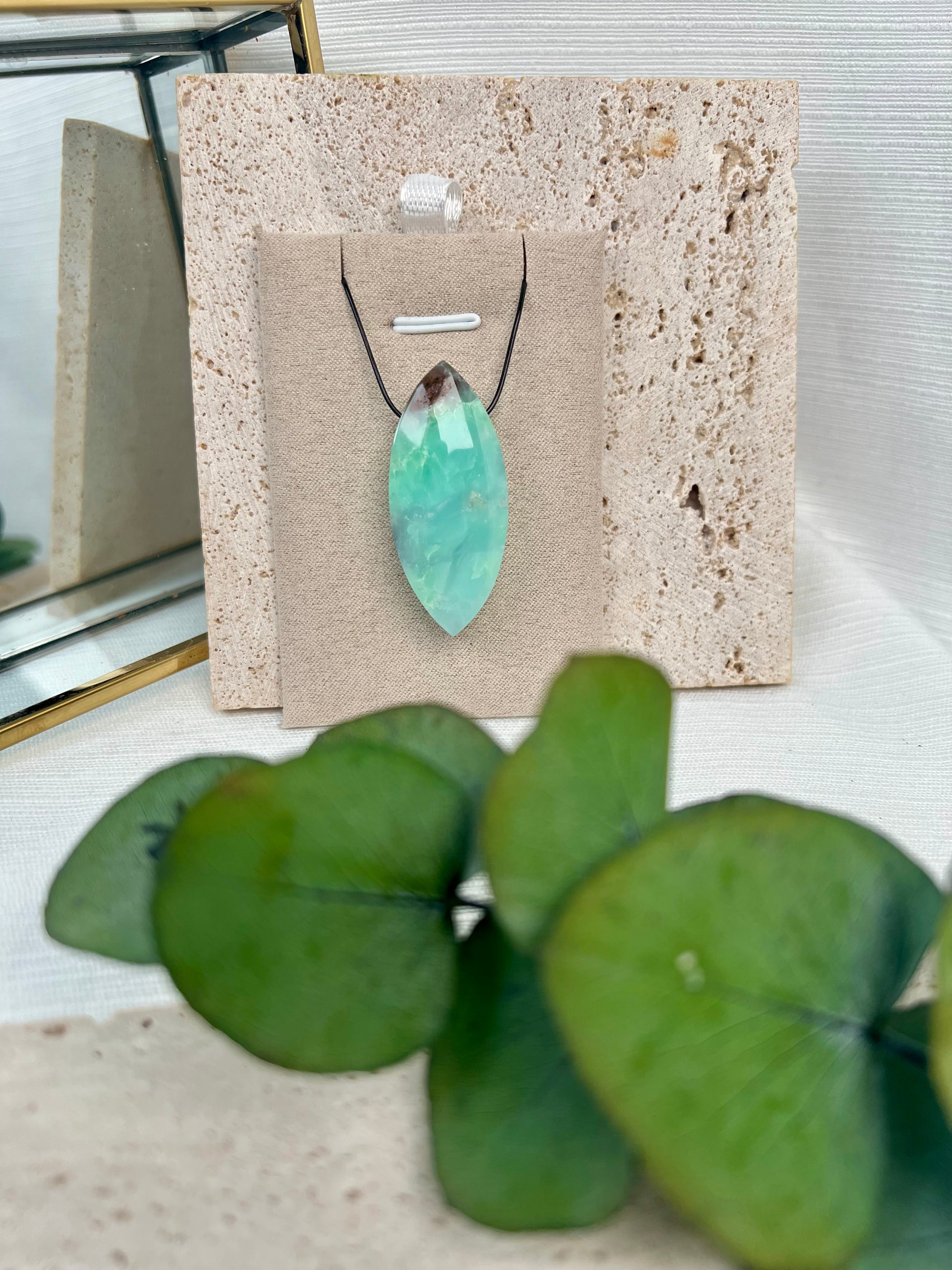 Chrysopras in Navette-Form gebohrt – leuchtend apfelgrün, erfrischend und vitalisierend.