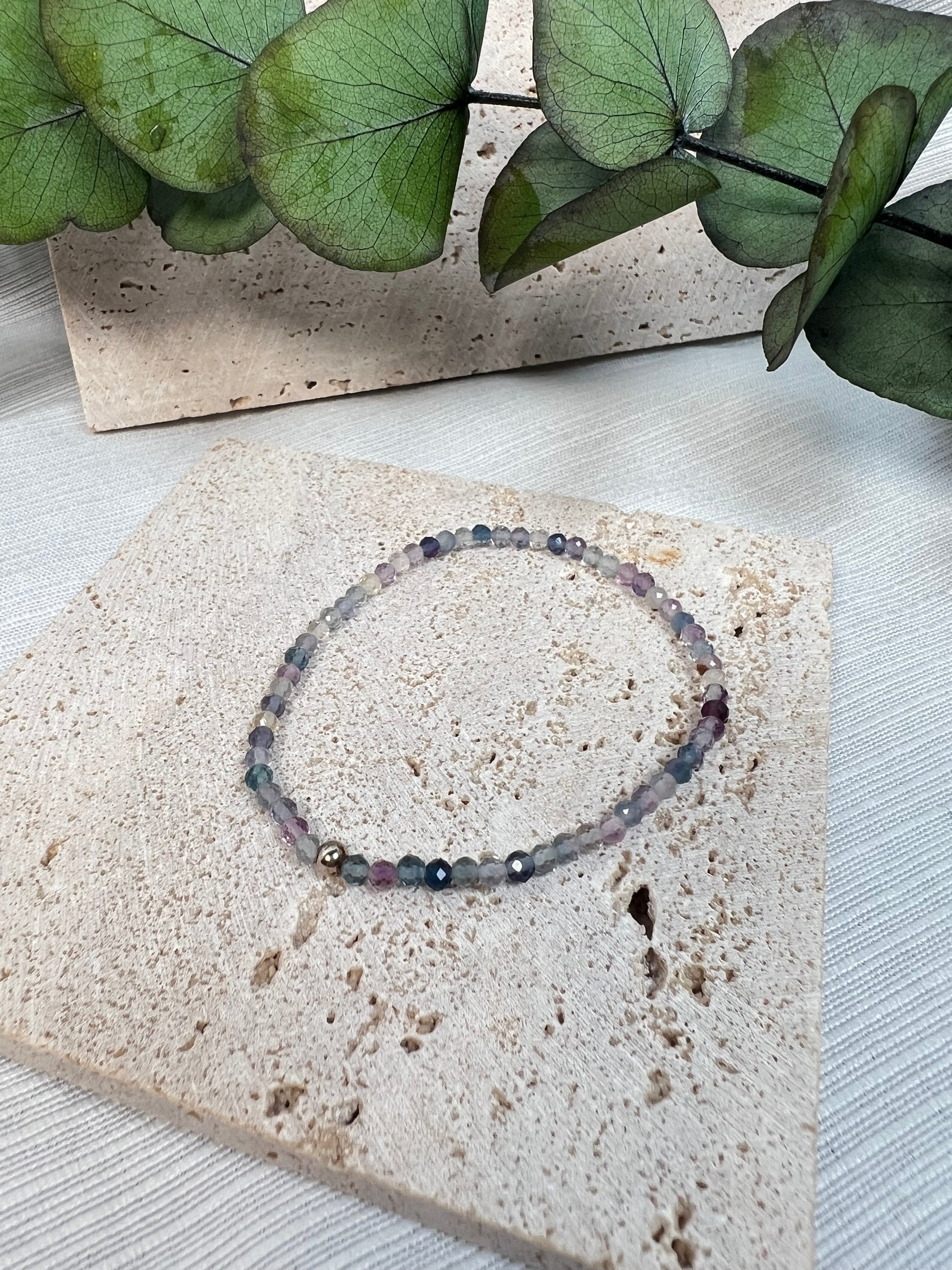 Facettiertes Fluorit Armband mit einer feinen 925 Silberperle