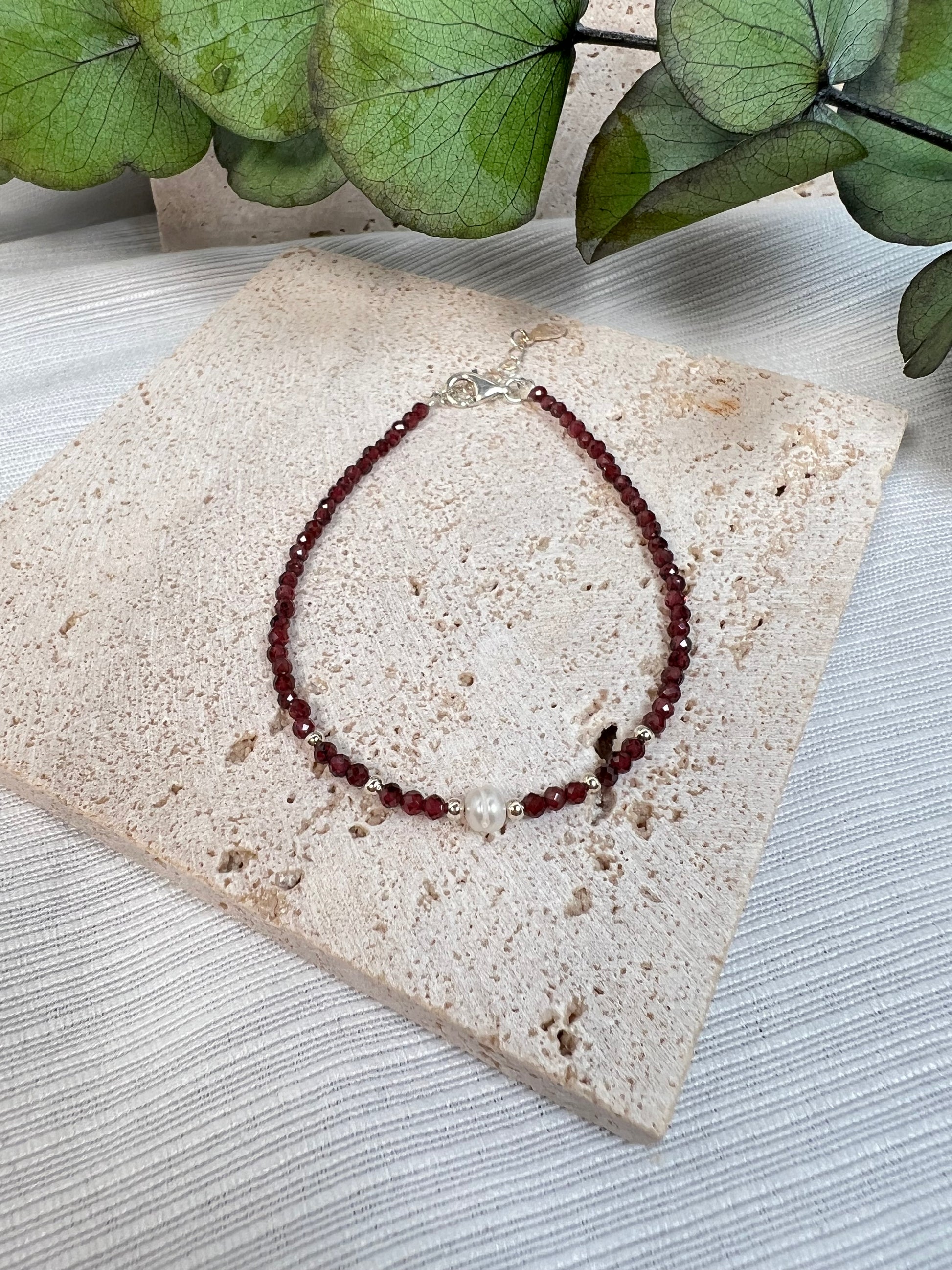 Facettiertes Granat Armband mit einer Süßwasserperle