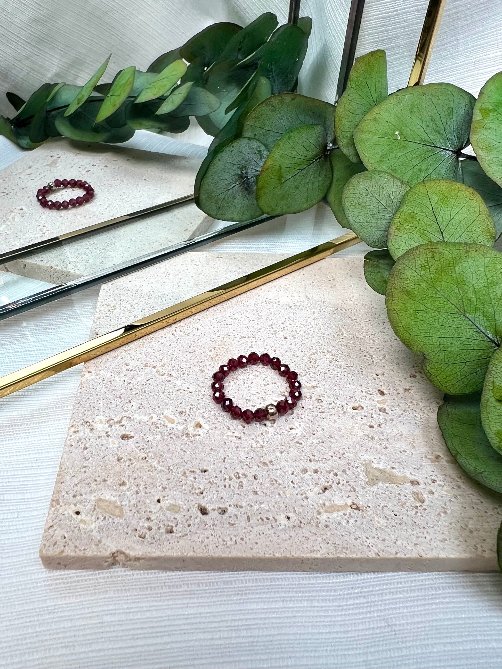 Facettierter Granat Perlenring mit einer feinen 925 Silberkugel