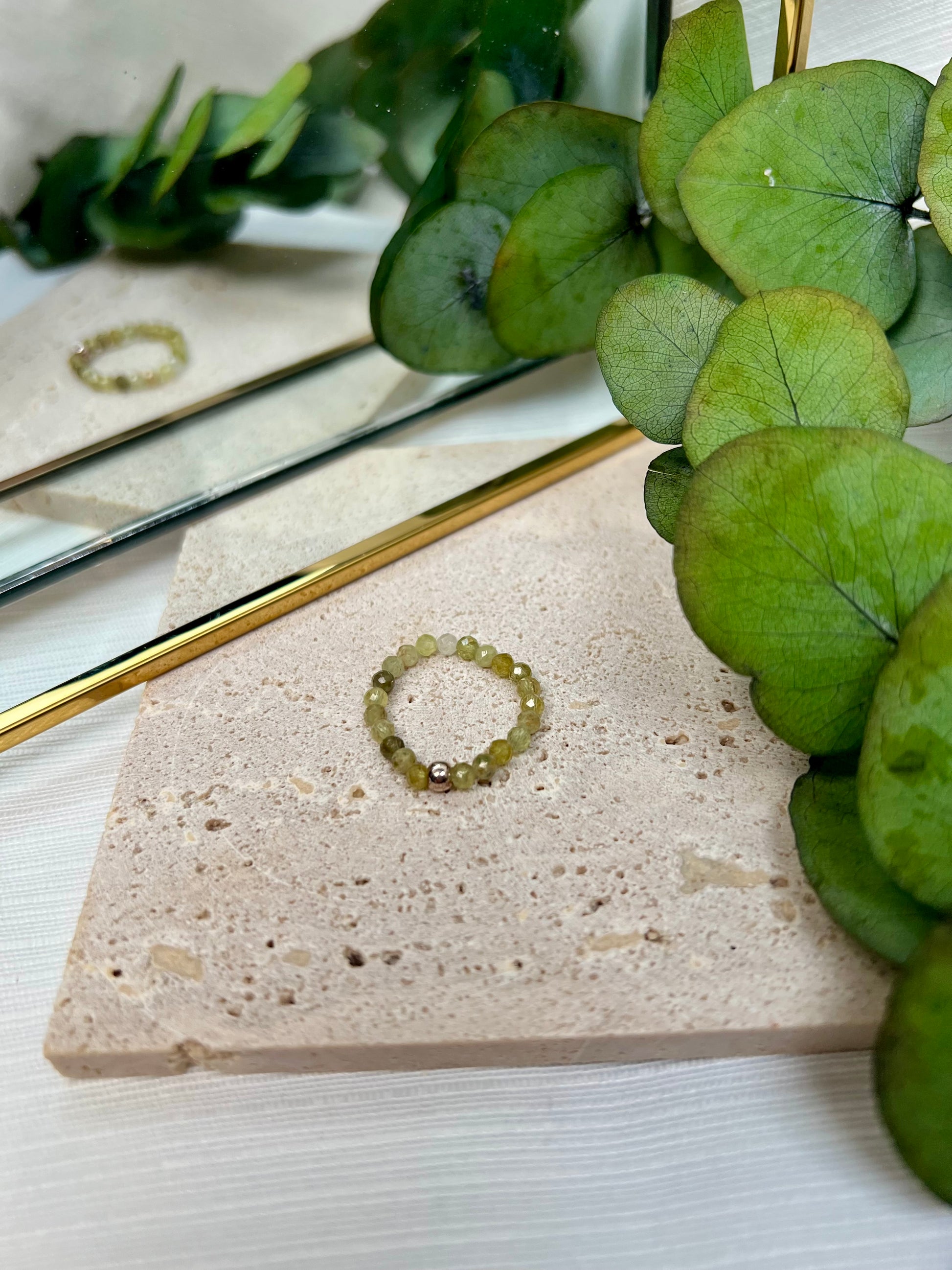 Facettierter Grossular Perlenring mit einer feinen 925 Silberperle