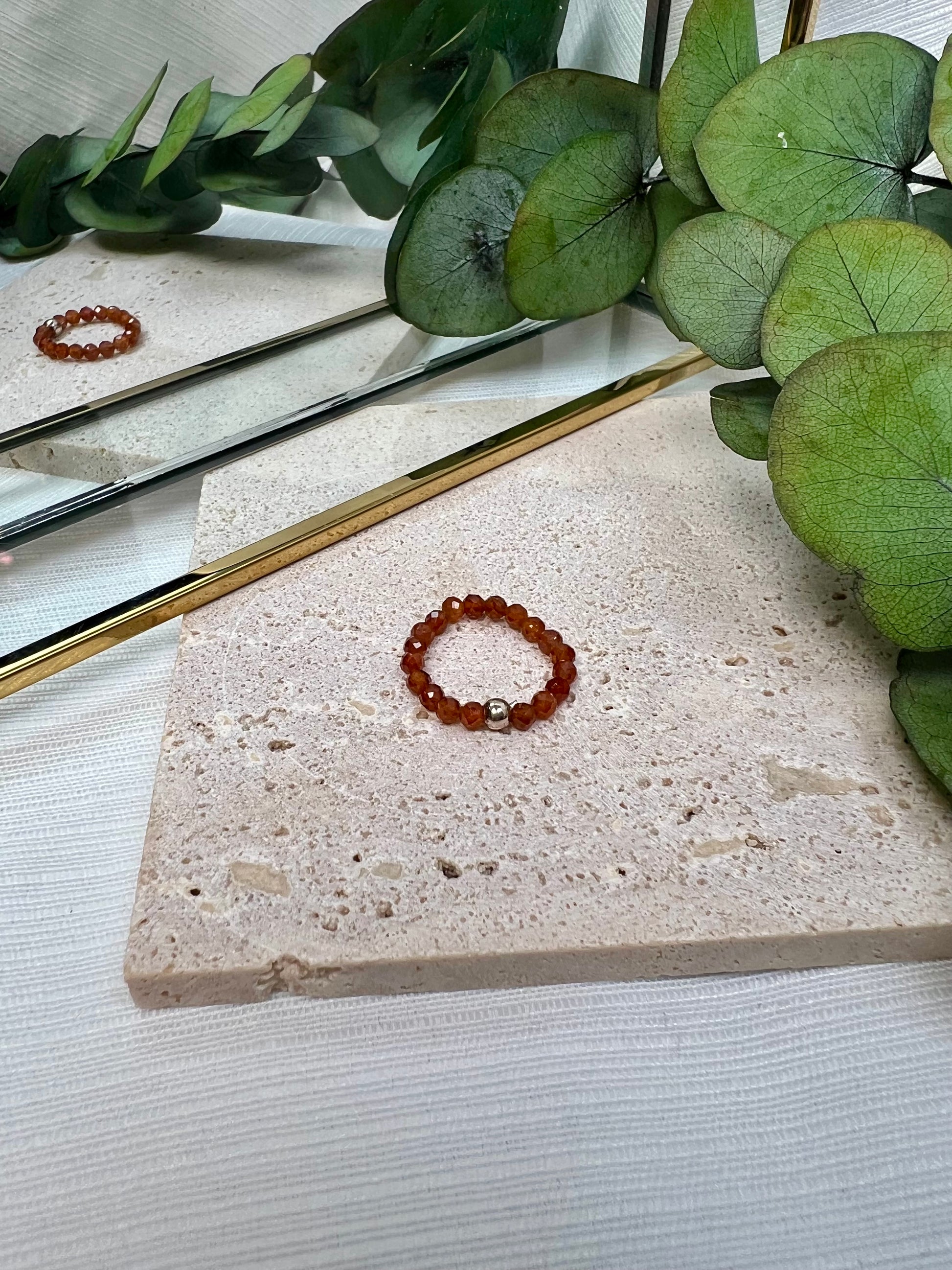 Facettierter Hessonit Perlenring mit einer feinen 925 Silberkugel