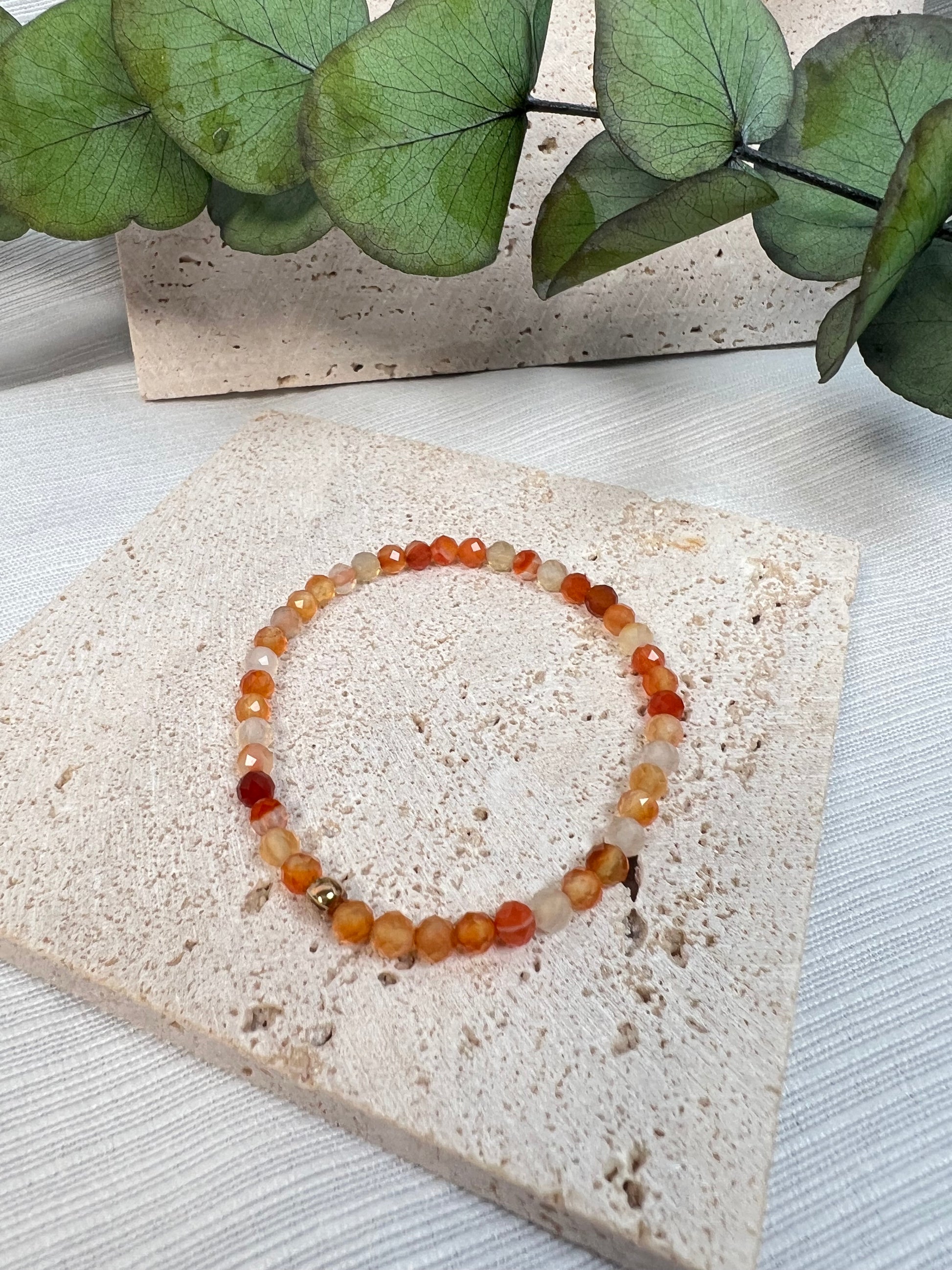 Facettiertes Karneol Armband mit einer feinen 925 Silberperle