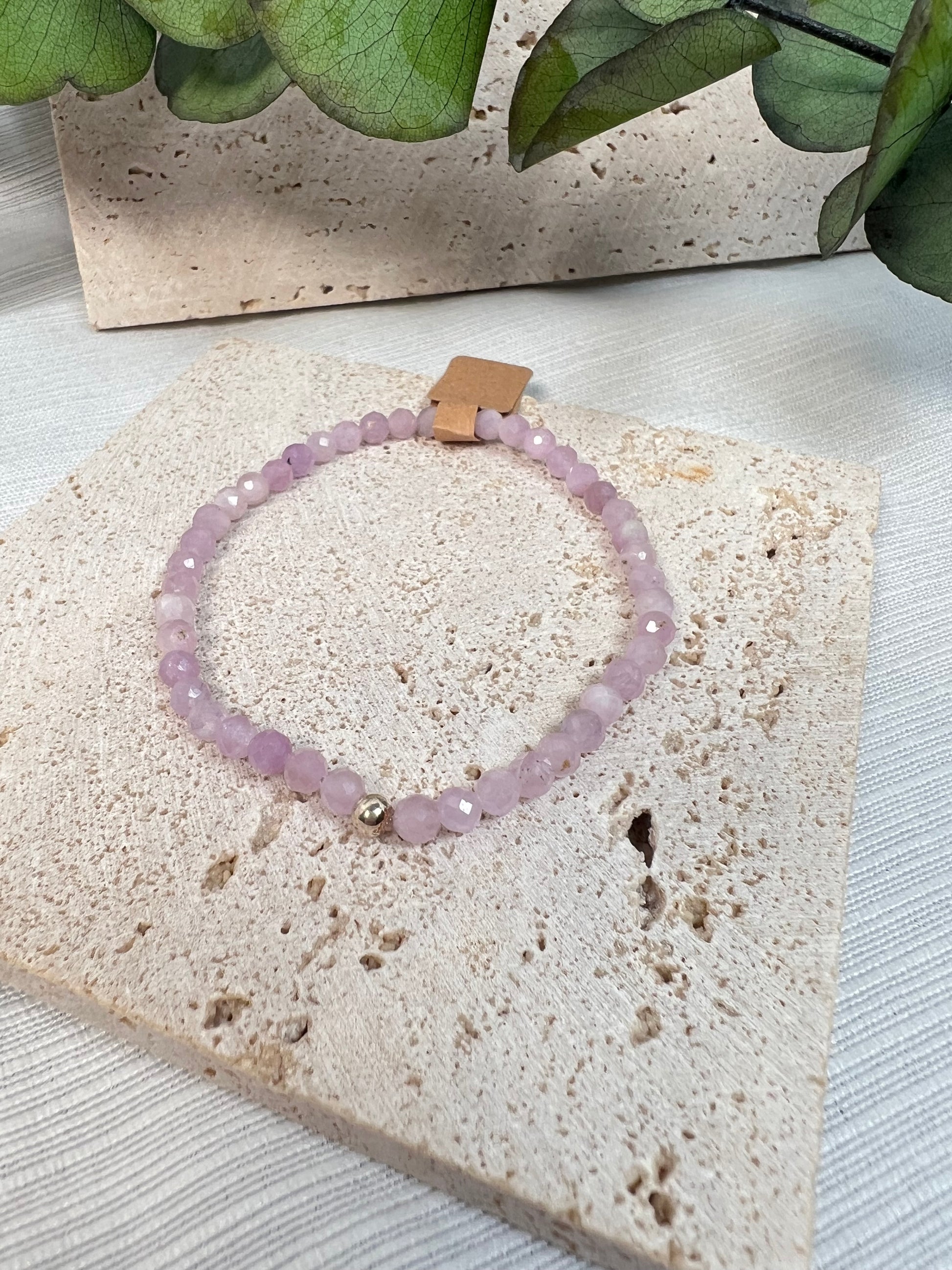 Facettiertes Kunzit Armband mit einer feinen 925 Silberperle