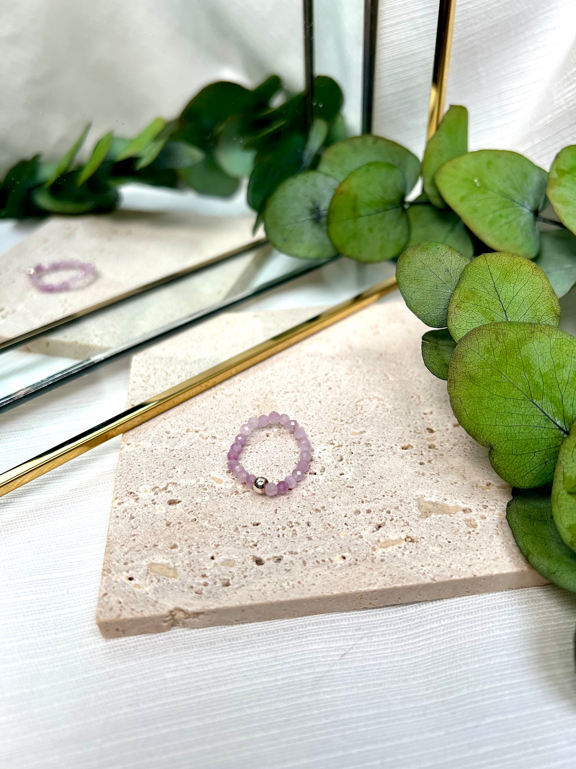 Facettierter Kunzit Perlenring mit einer feinen 925 Silberperle