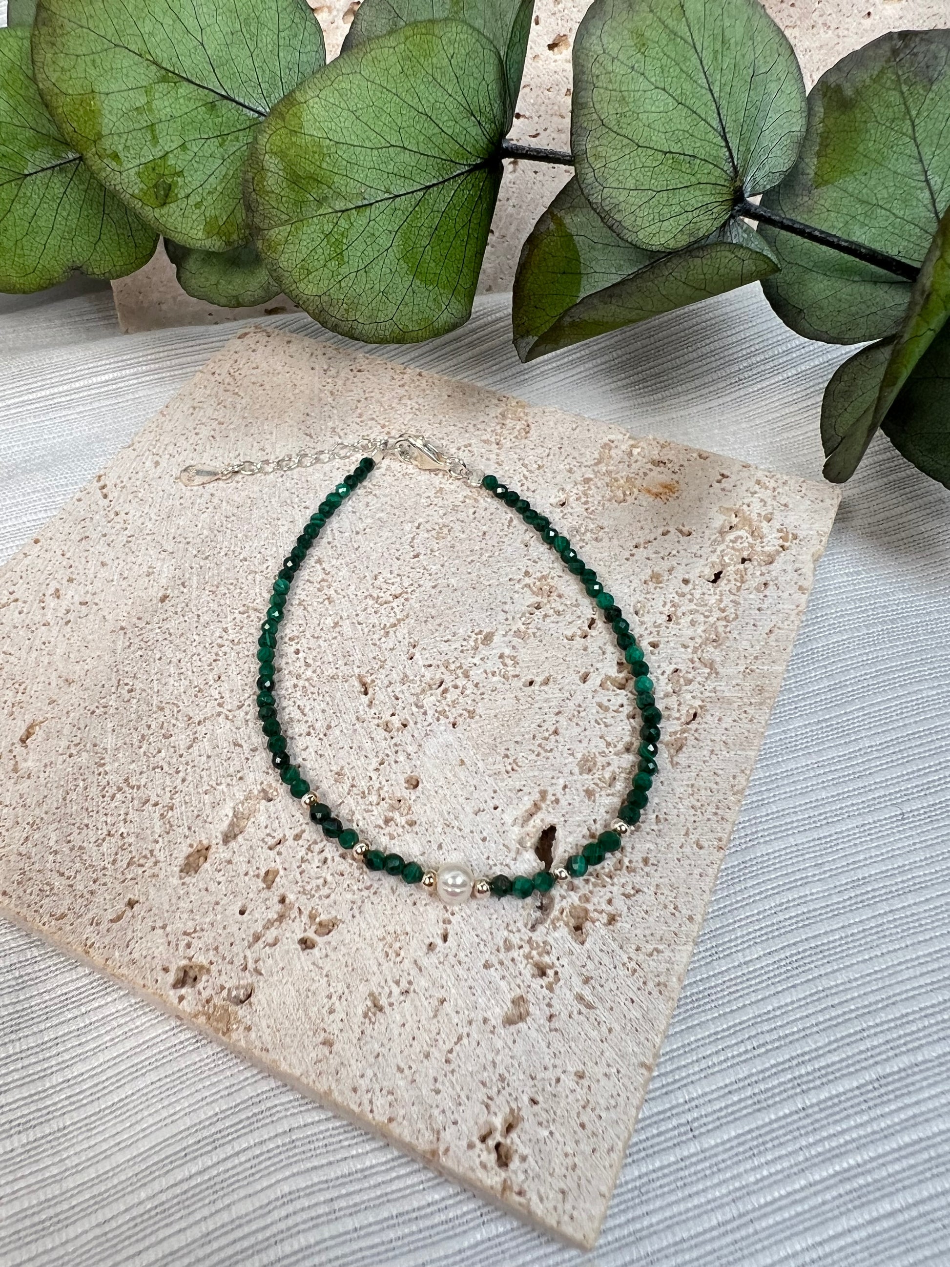 Facettiertes Malachit Armband mit einer Süßwasserperle