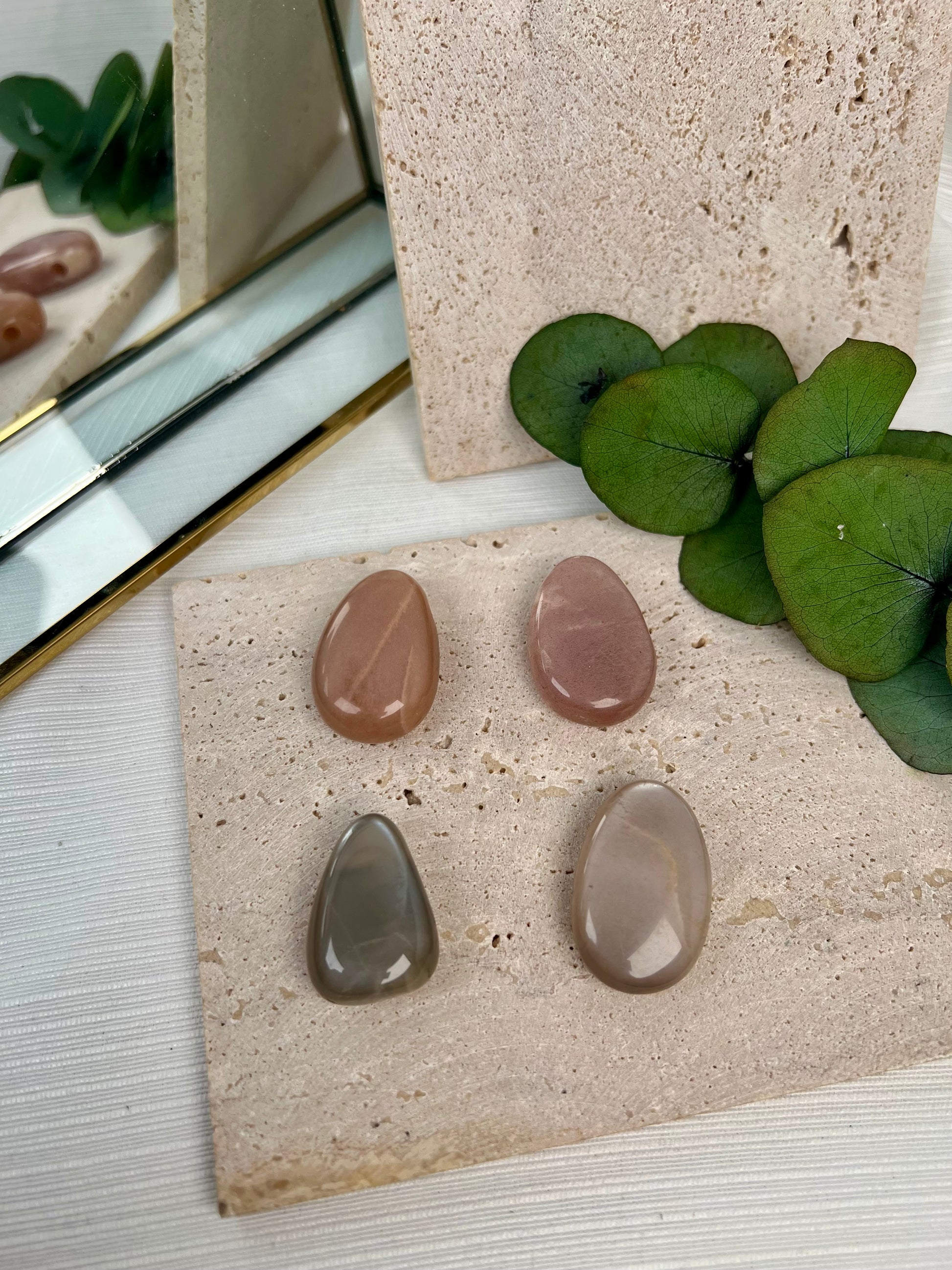 Mondstein Anhänger, gebohrt – schimmernd mit feinem Lichtspiel, wirkt mystisch und feminin. Ideal als eleganter Begleiter für Ketten oder Bänder.