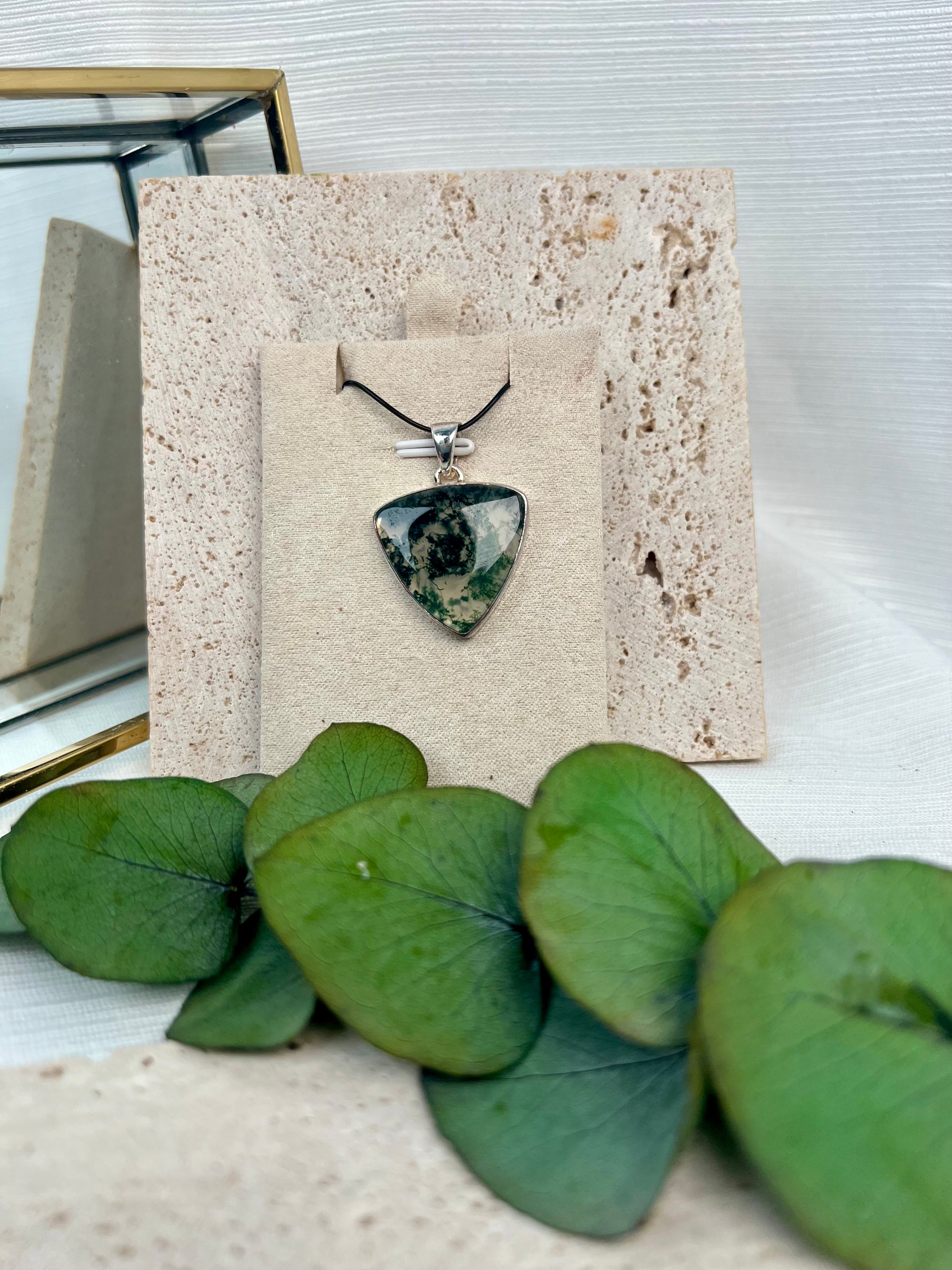 Natürlicher Moosachat, stilvoll in Silber gefasst – erdend und einzigartig.