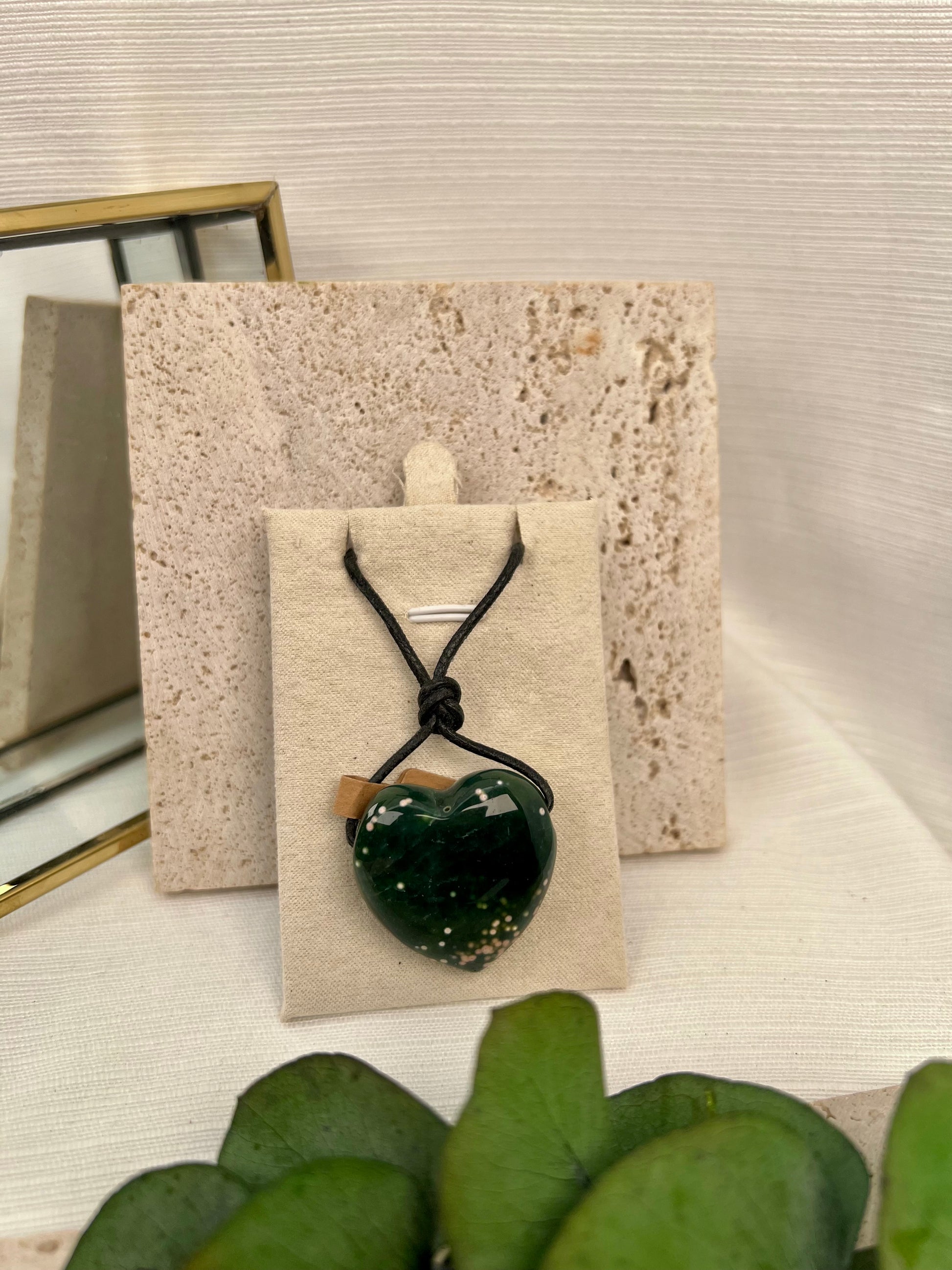 Gebohrtes Ocean Jaspis-Herz an Lederband - natürlich und einzigartig.