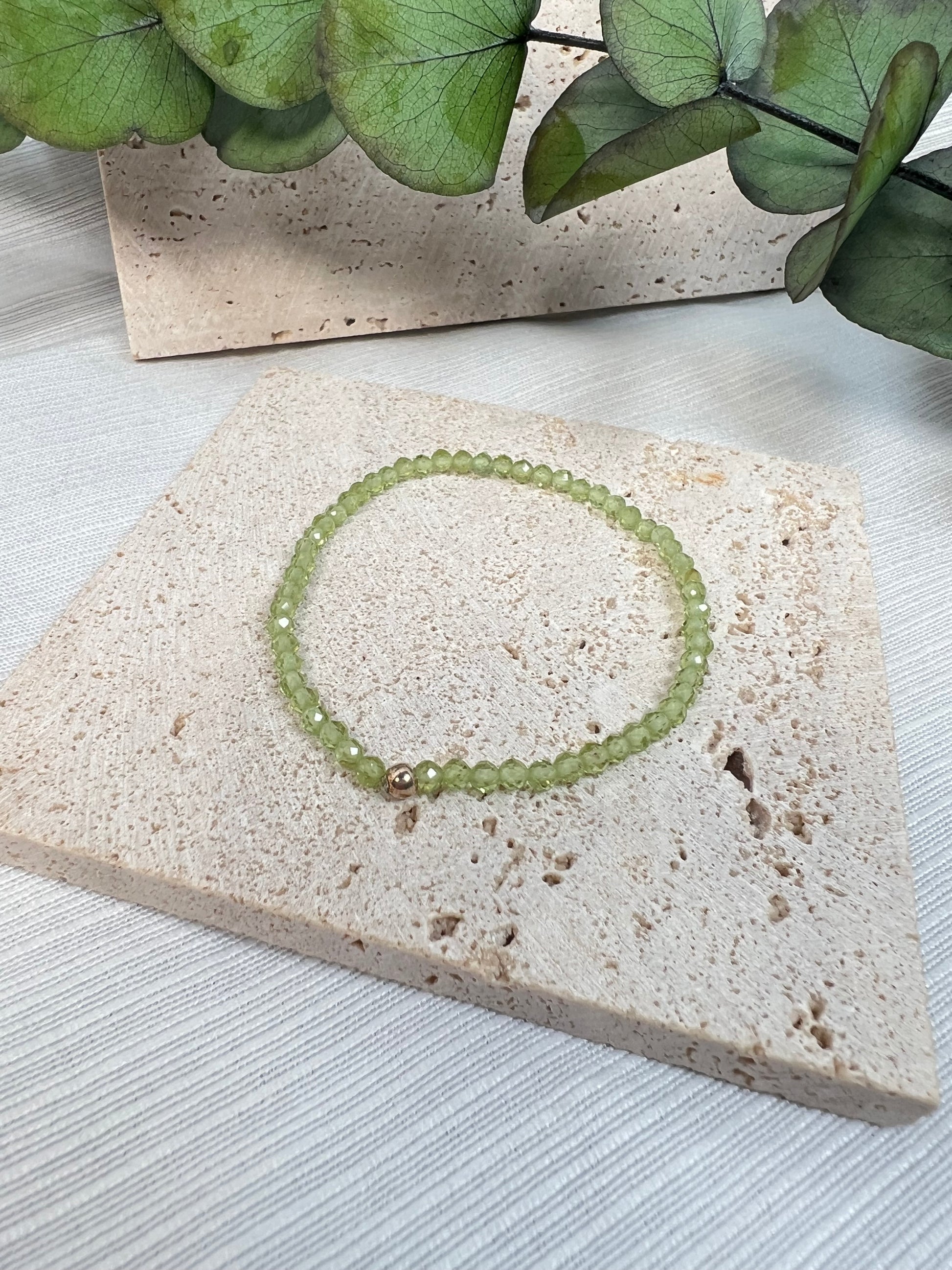 Facettiertes Peridot Armband mit einer feinen 925 Silberperle
