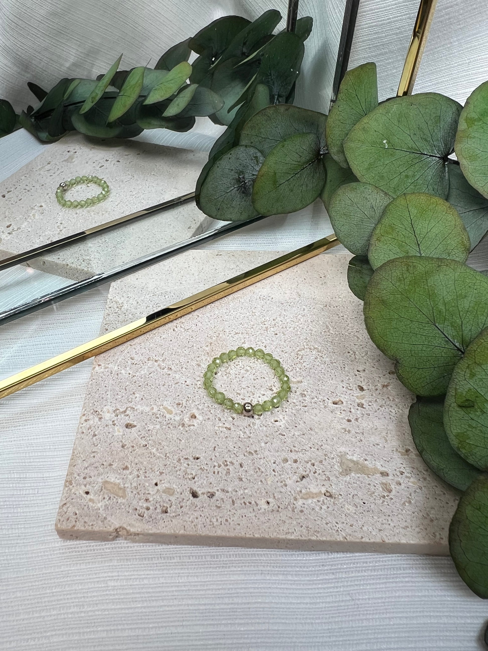 Facettierter Peridot Perlenring mit einer feinen 925 Silberkugel