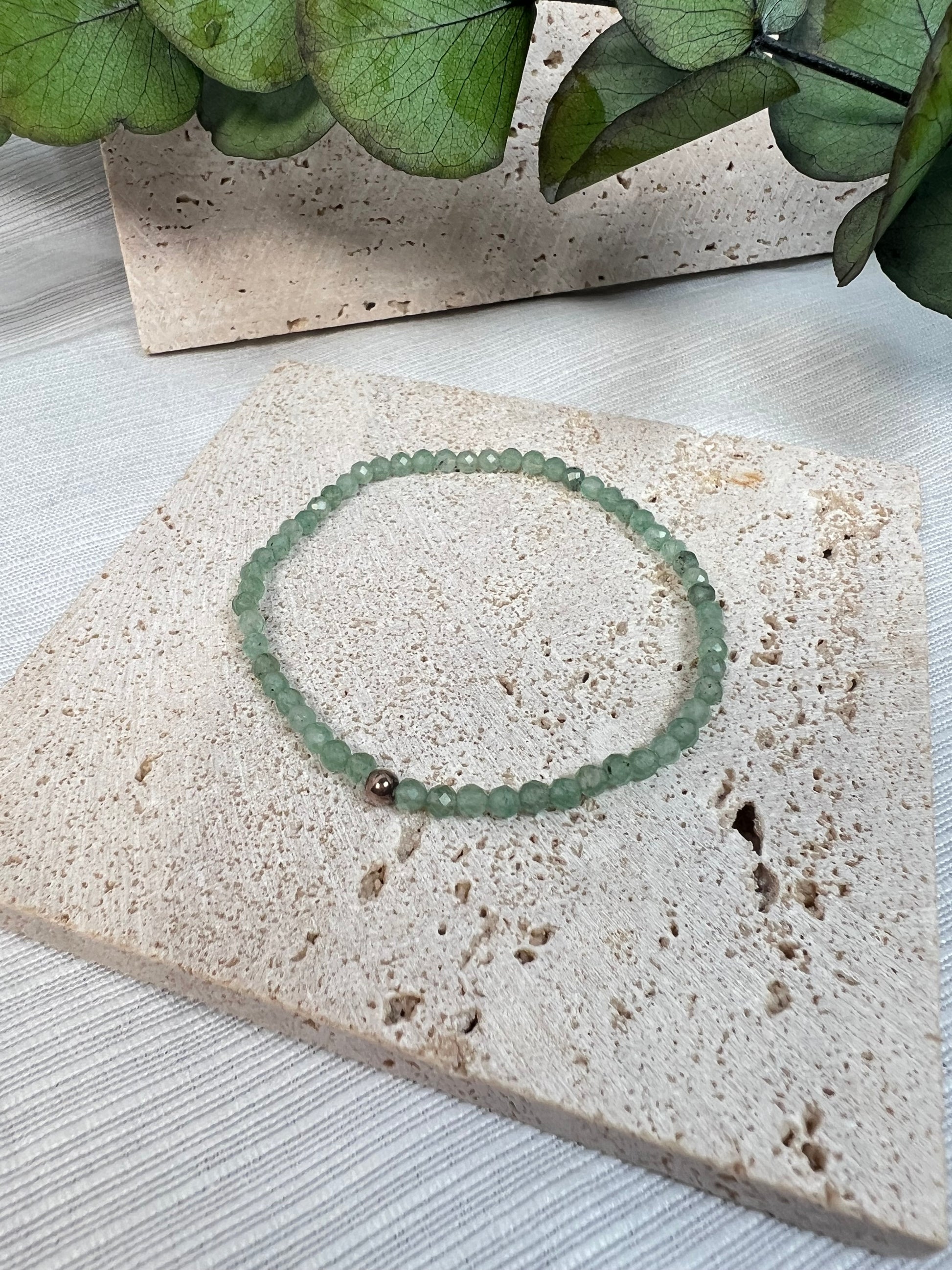 Facettiertes Prehnit Armband mit einer feinen 925 Silberperle