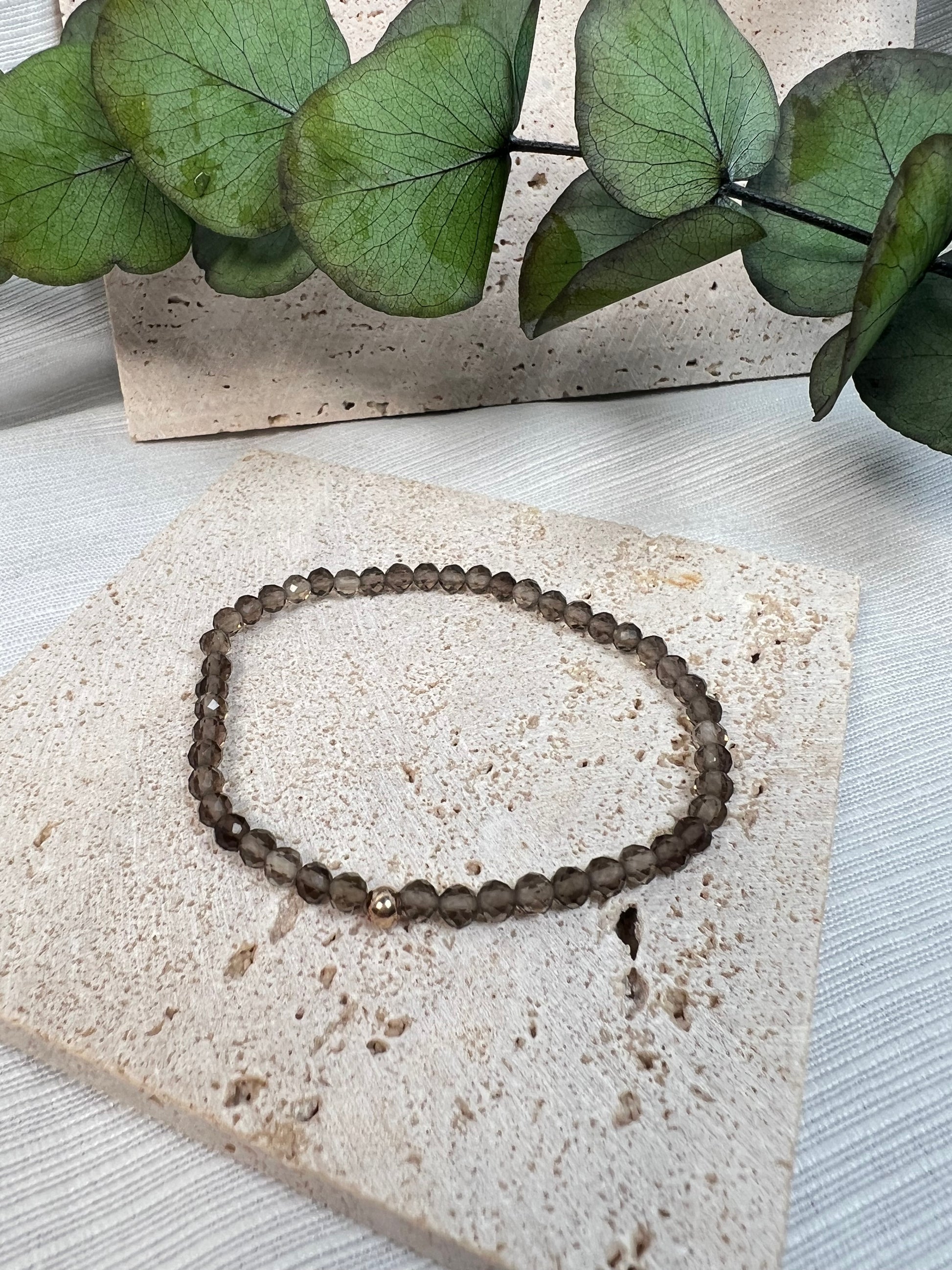 Facettiertes Rauchquarz Armband mit einer feinen 925 Silberperle