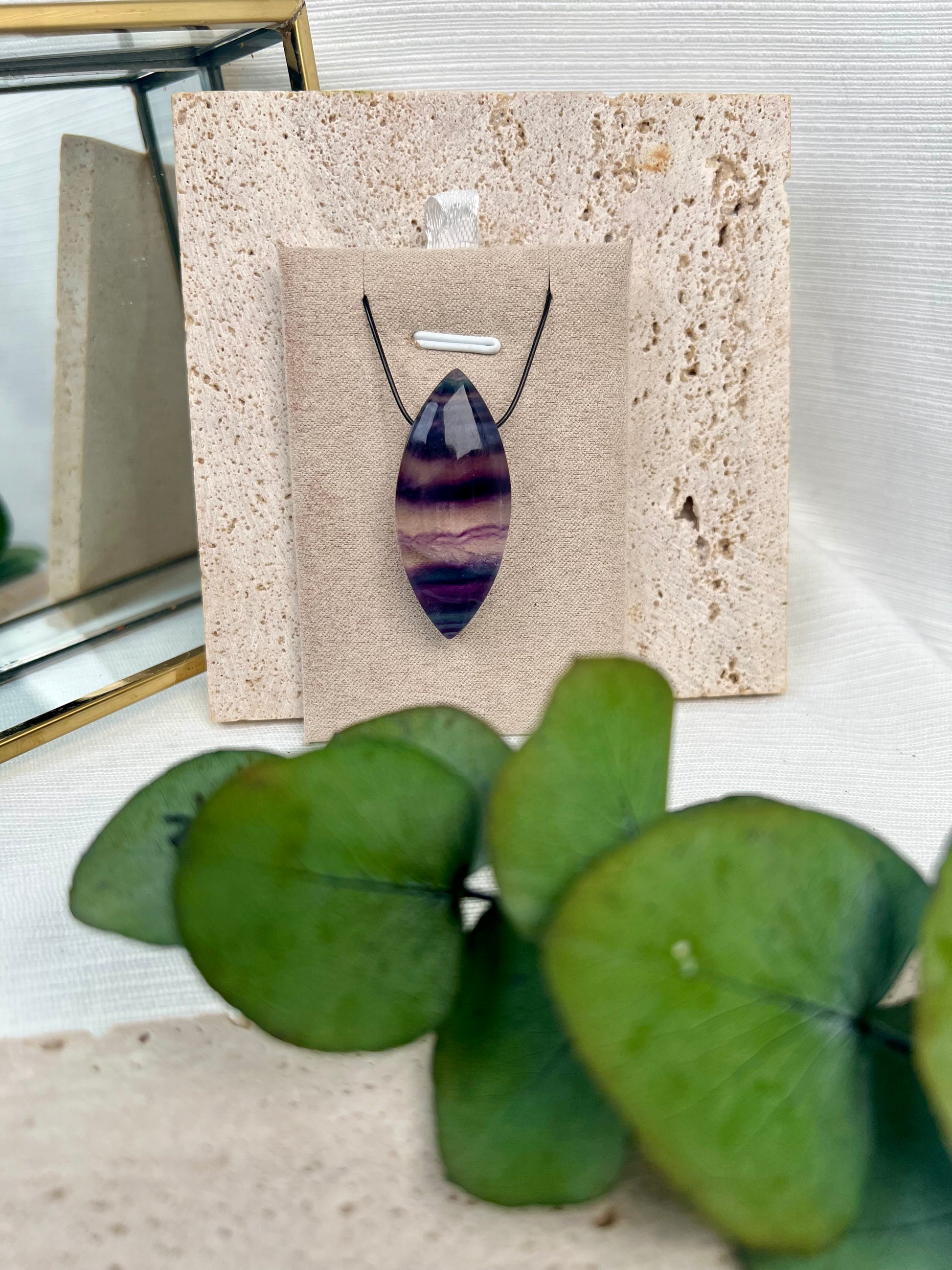 Regenbogen-Fluorit in Navette-Form gebohrt – faszinierendes Farbspiel, ideal für individuelle Schmuckkreationen.