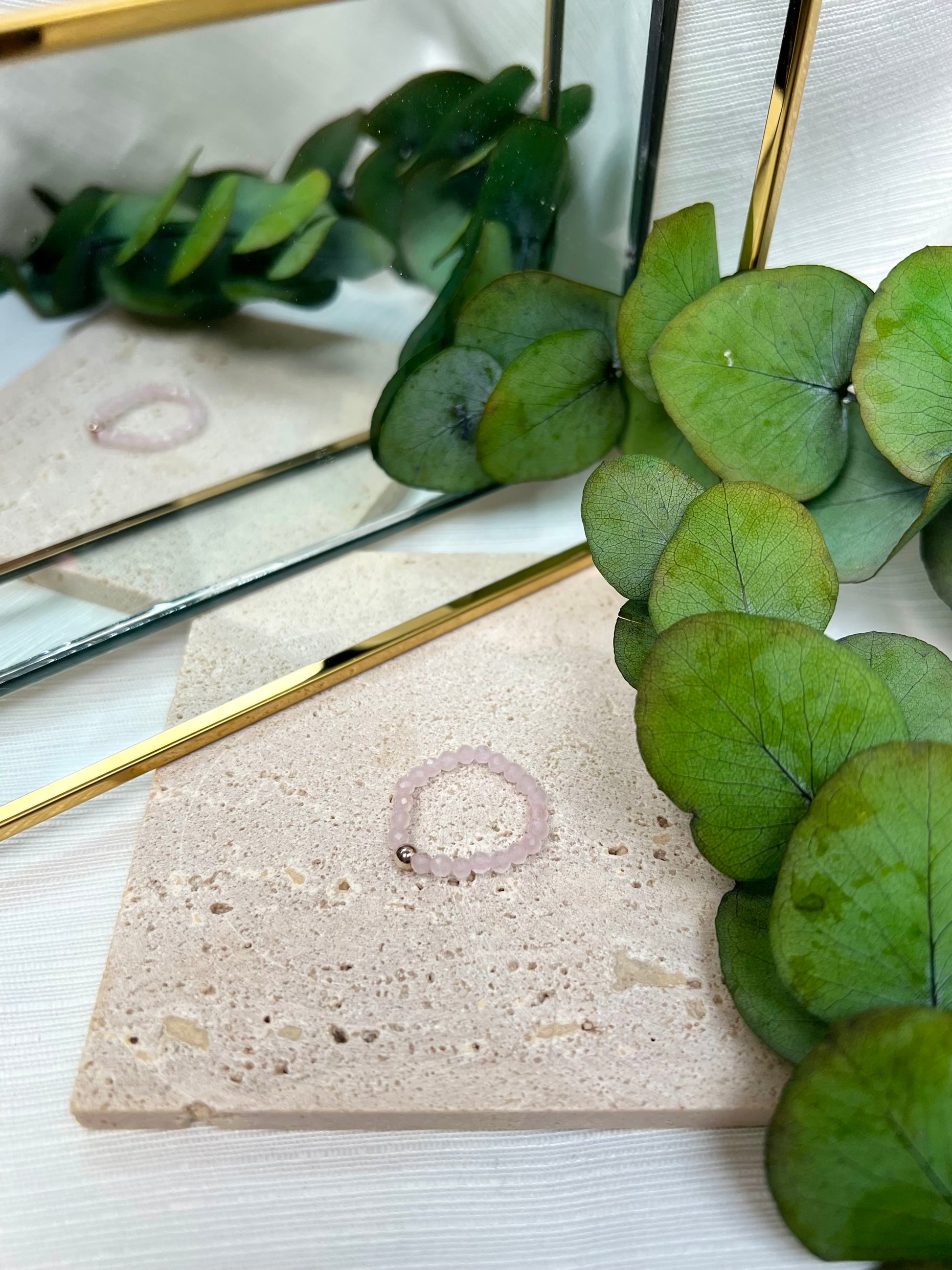 Facettierter Rosenquarz Perlenring mit einer feinen 925 Silberperle