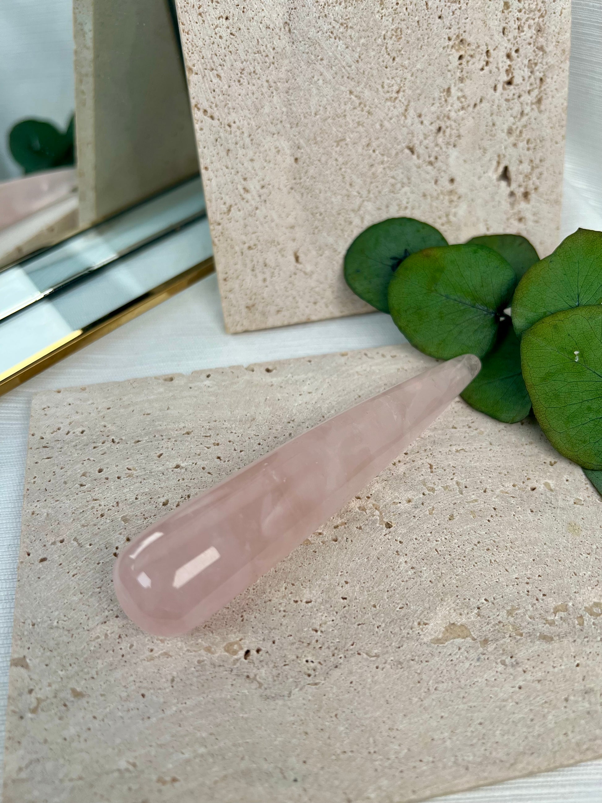 Rosenquarz Massagestein - für punktuelle Massage im Gesicht oder Körper.