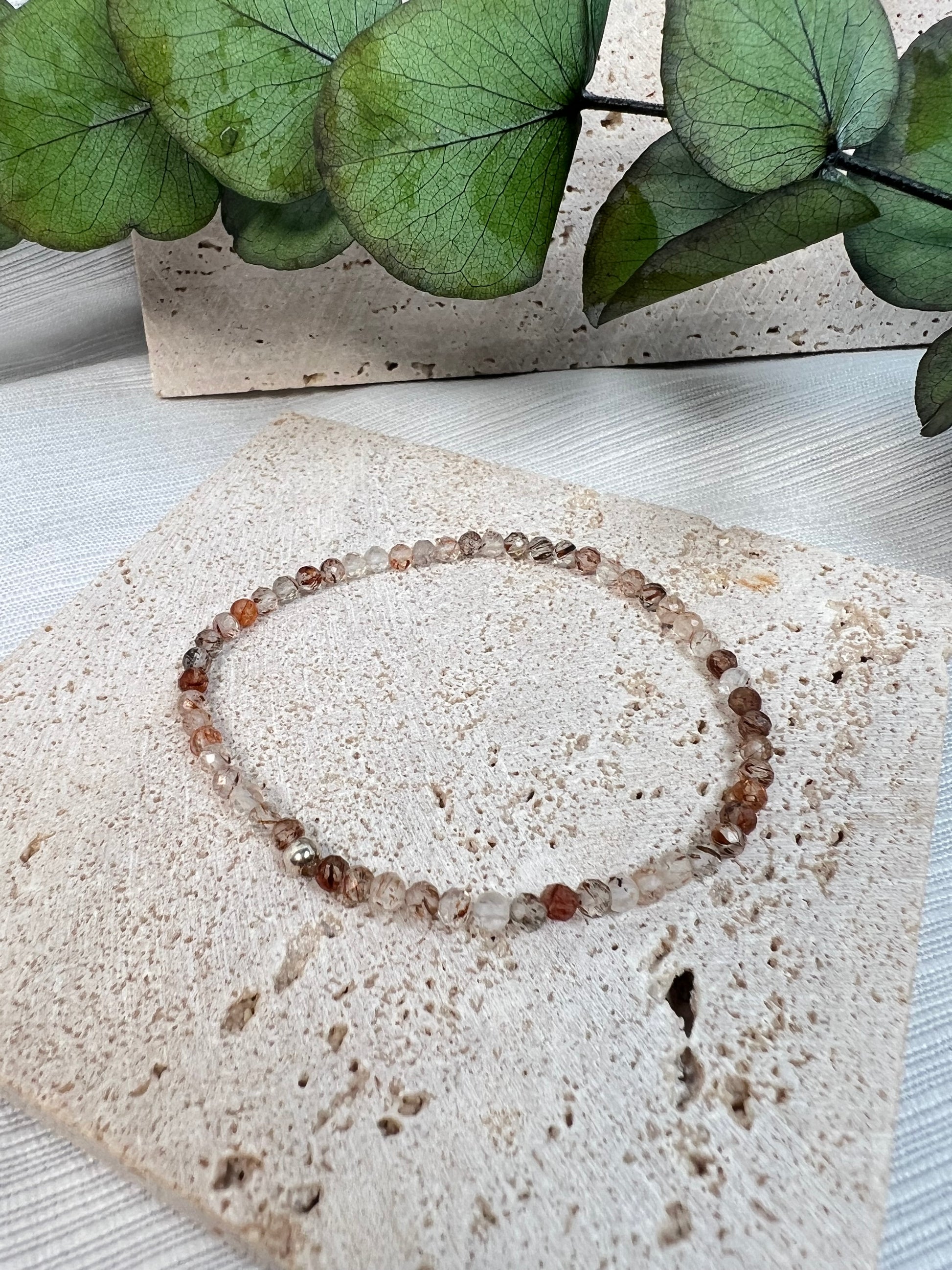 Facettiertes Rutilquarz Armband mit einer feinen 925 Silberperle