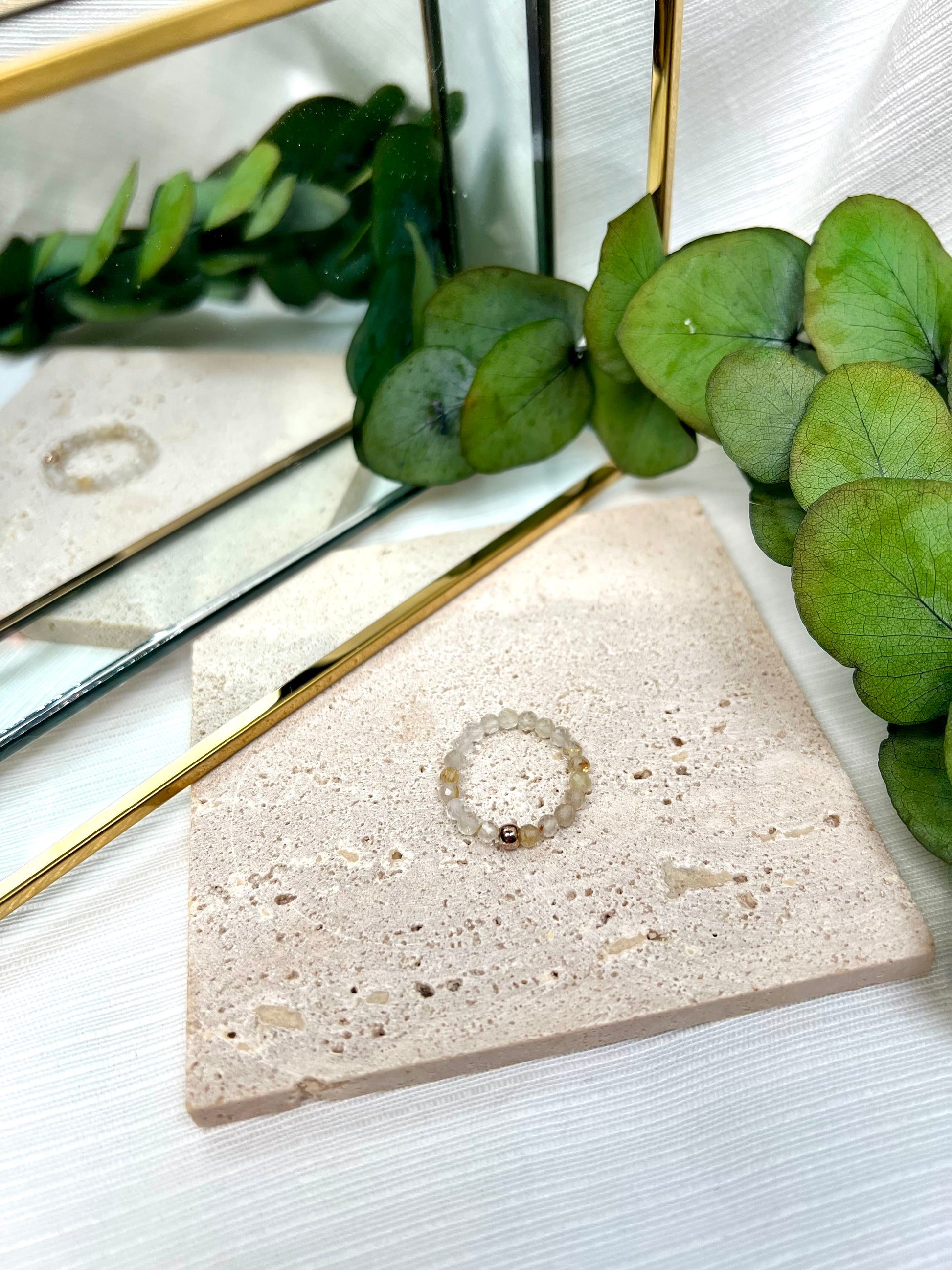 Facettierter Rutilquarz Perlenring mit einer feinen 925 Silberperle