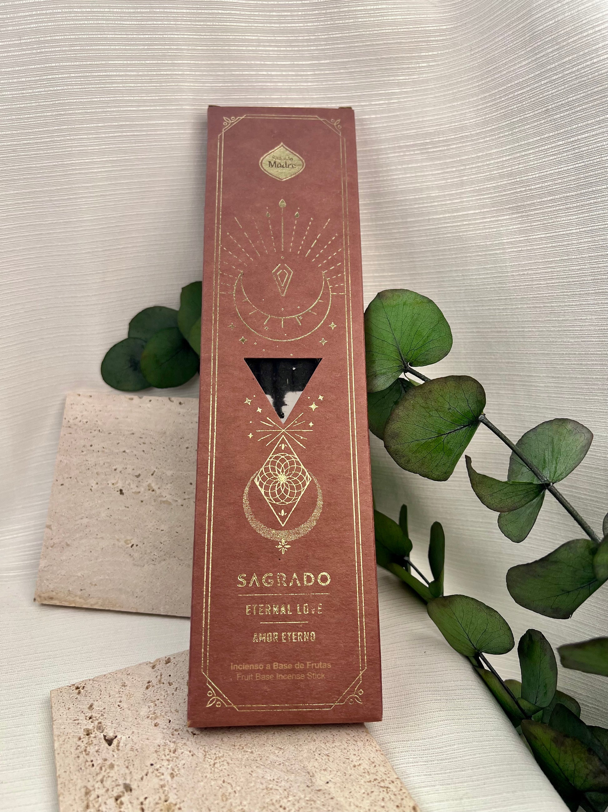 Sagrada Madres Sacred Line-Räucherstäbchen Eternal Love ist ein Duft, der den Geist erhebt und das Herz mit einem Gefühl zeitloser Liebe umhüllt. Sein warmes und beruhigendes Aroma überschreitet alle Dimensionen und schafft eine heilige Atmosphäre für Meditation, Entspannung oder Rituale, die der Liebe und Verbundenheit gewidmet sind.