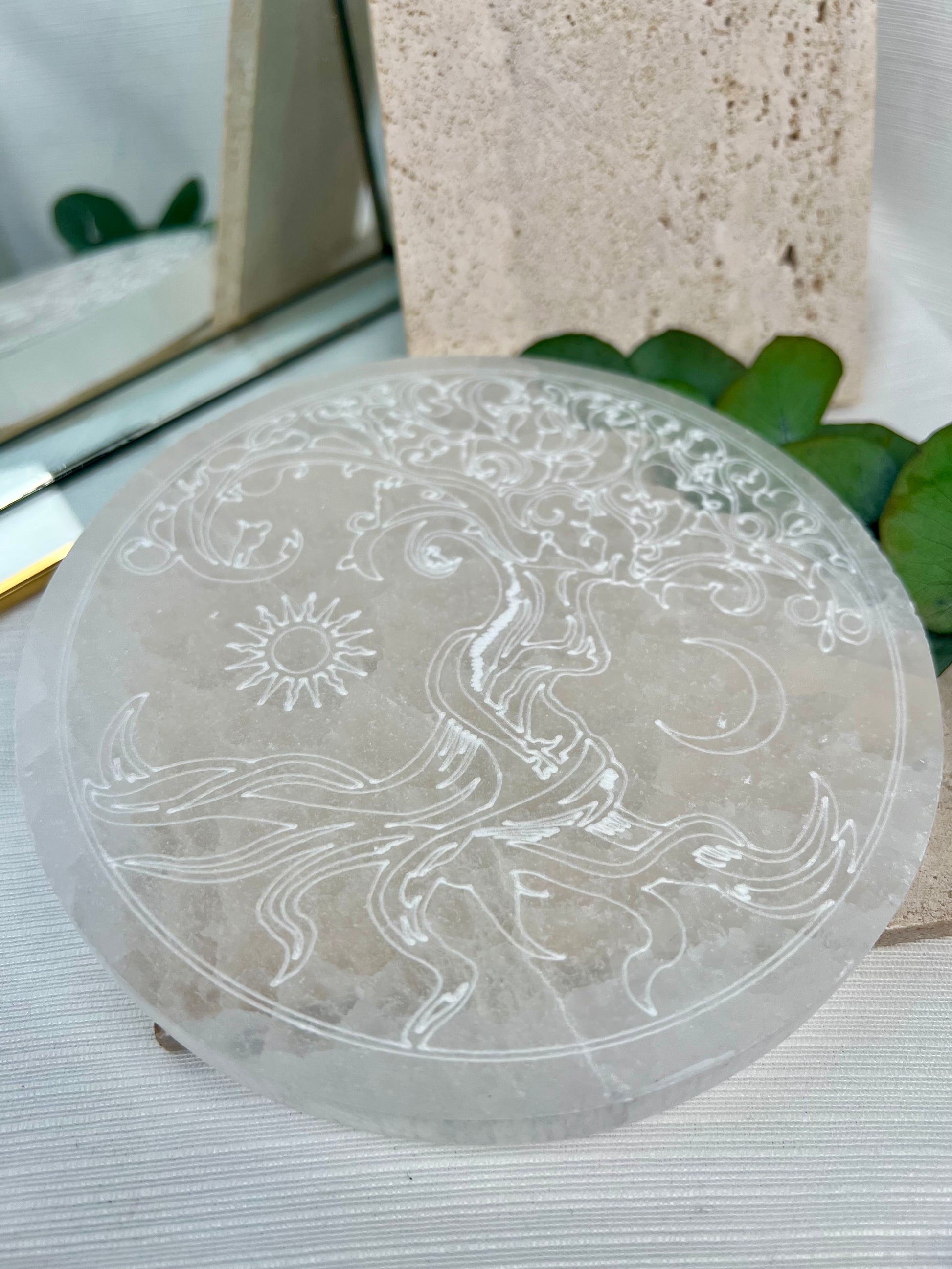Selenit Platte – Reinigt und lädt Kristalle sowie Räume energetisch auf, bringt Klarheit und Ruhe.