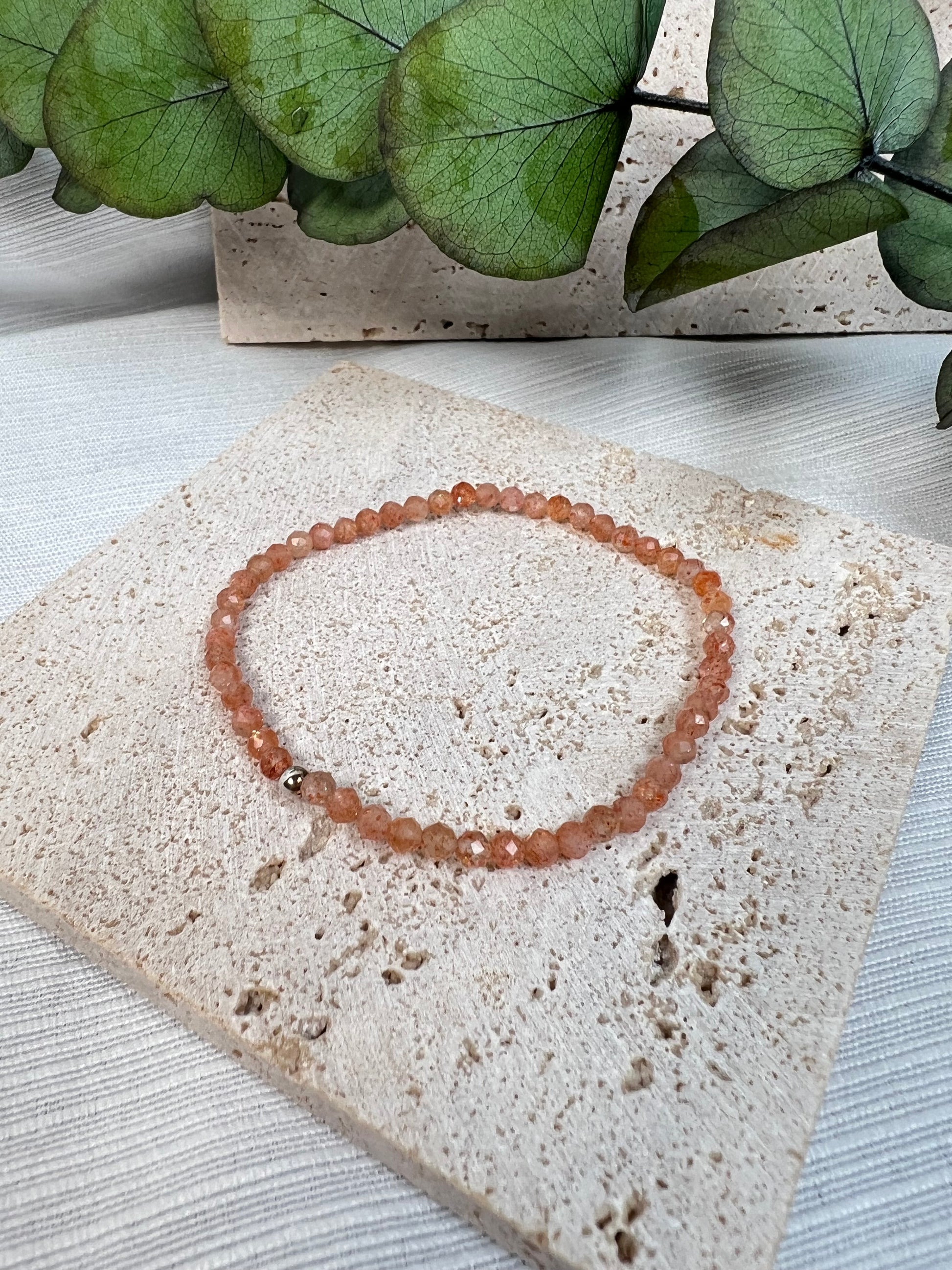 Facettiertes Sonnenstein Armband mit einer feinen 925 Silberperle