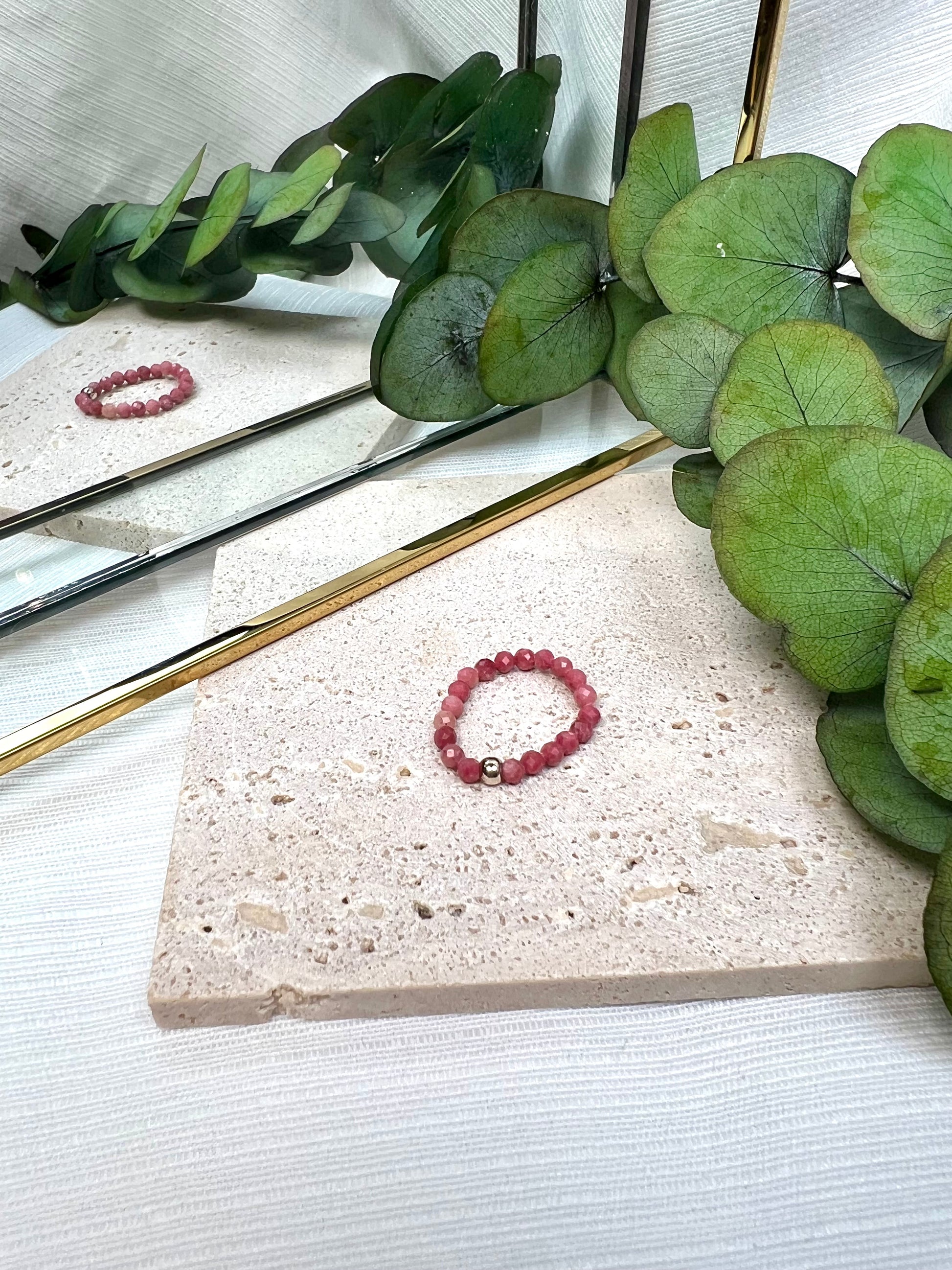 Facettierter Thulit Perlenring mit einer feinen 925 Silberperle