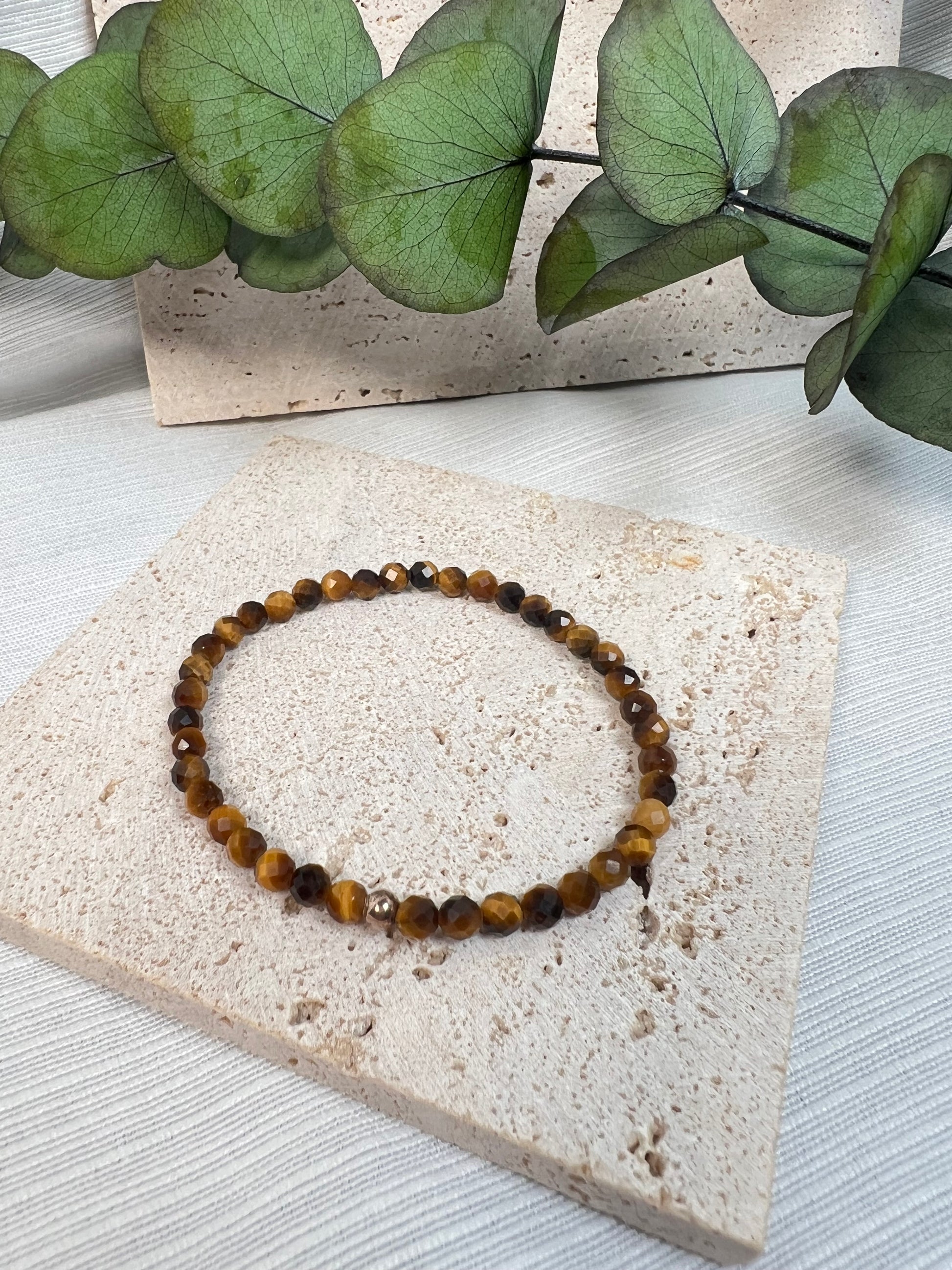 Facettiertes Tigerauge Armband mit einer feinen 925 Silberperle