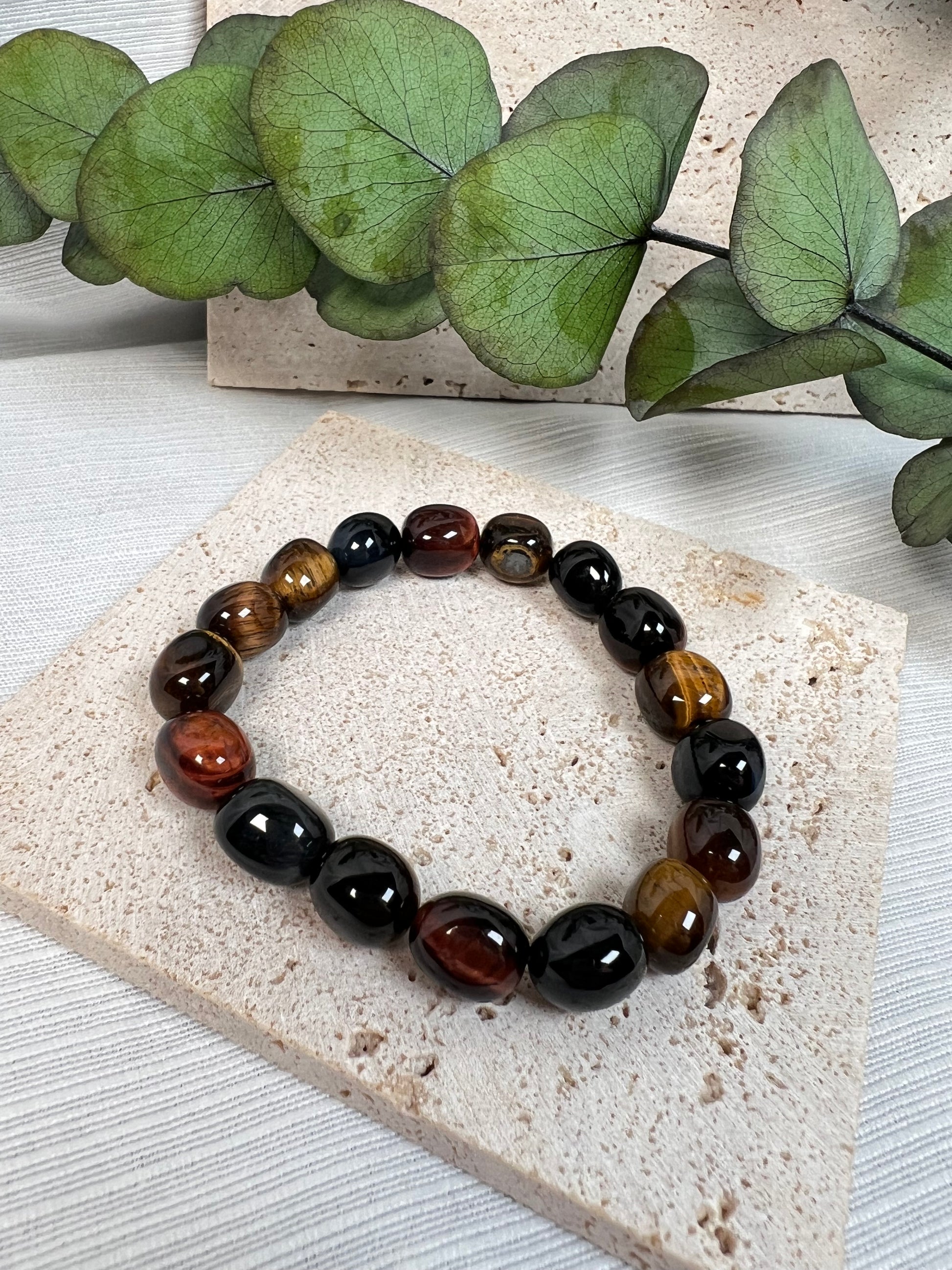 Tigerauge mix (gold, rot, blau) Nuggetarmband