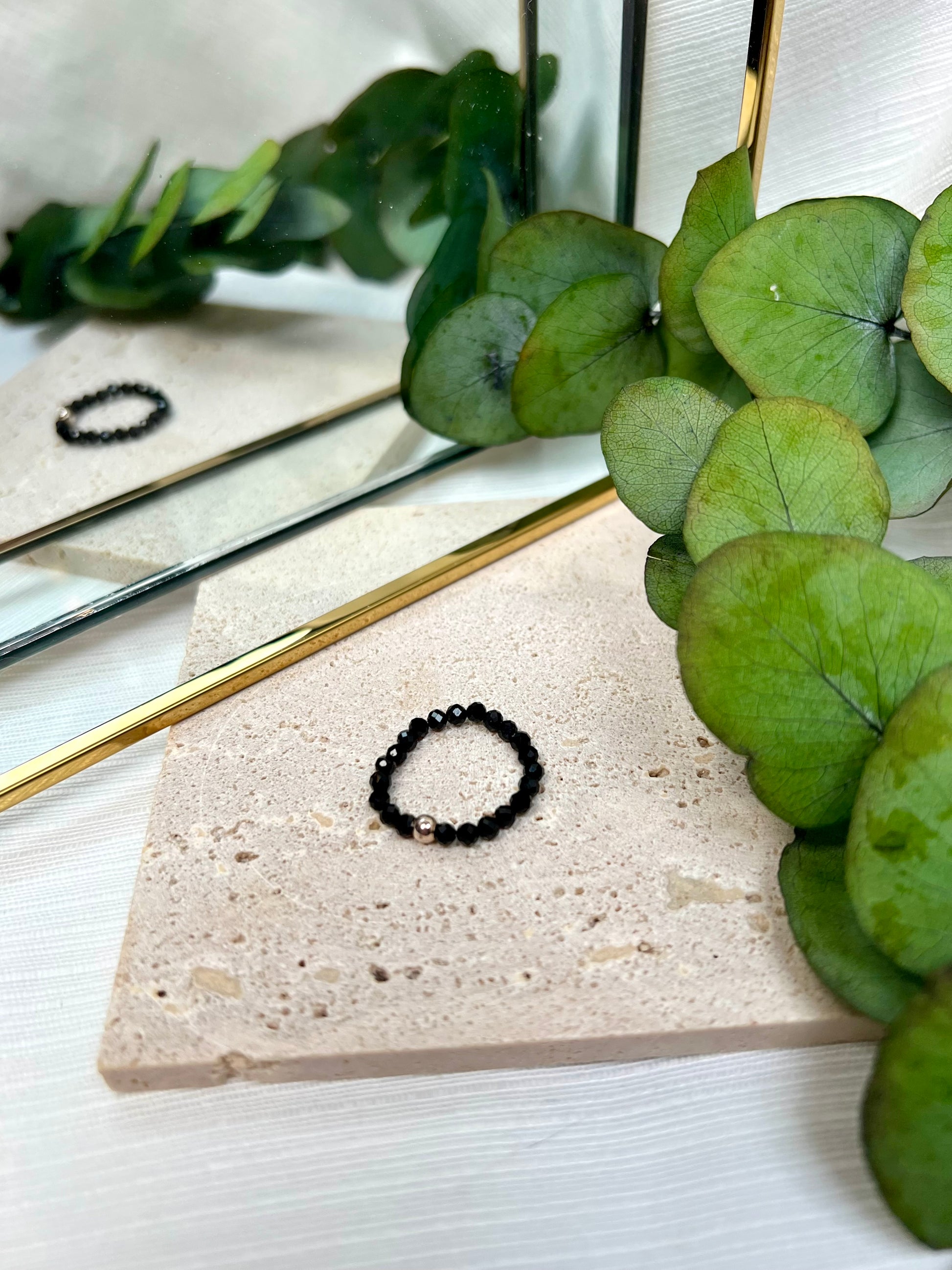Facettierter Turmalin Perlenring mit einer feinen 925 Silberperle