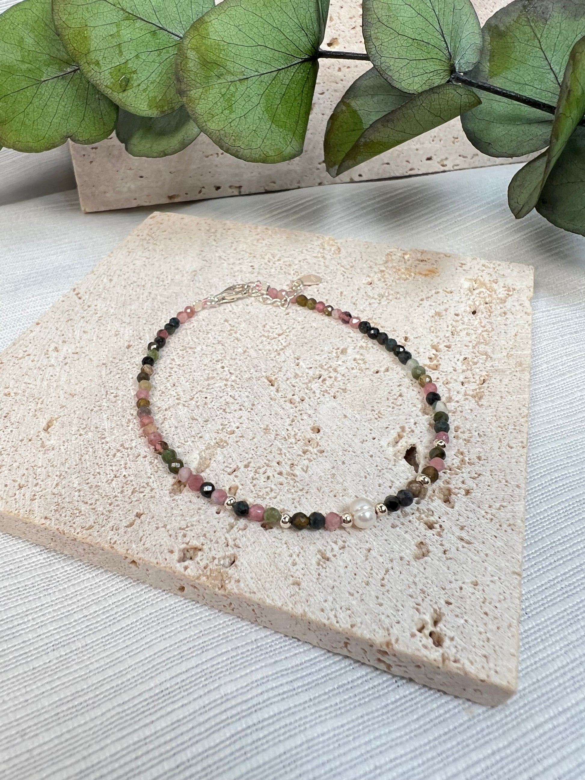 Facettiertes Turmalin (bunt) Armband mit einer Süßwasserperle