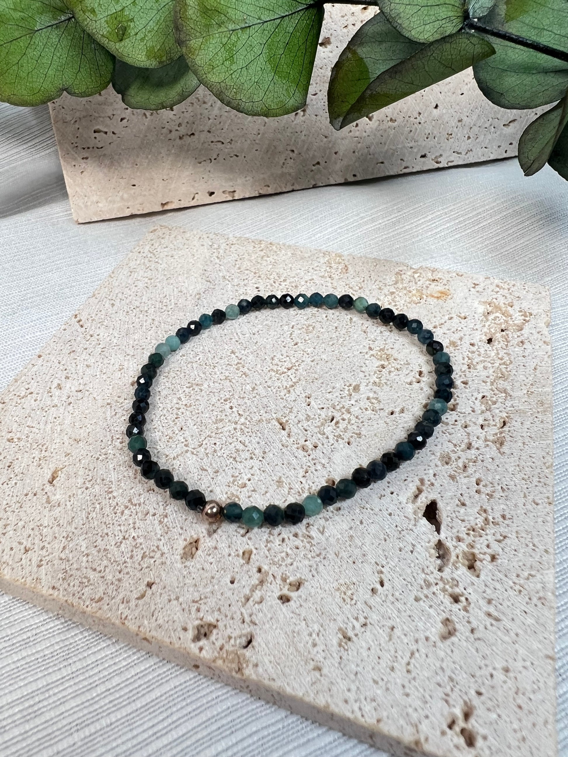 Facettiertes Tirmalin (grün) Armband mit einer feinen 925 Silberperle